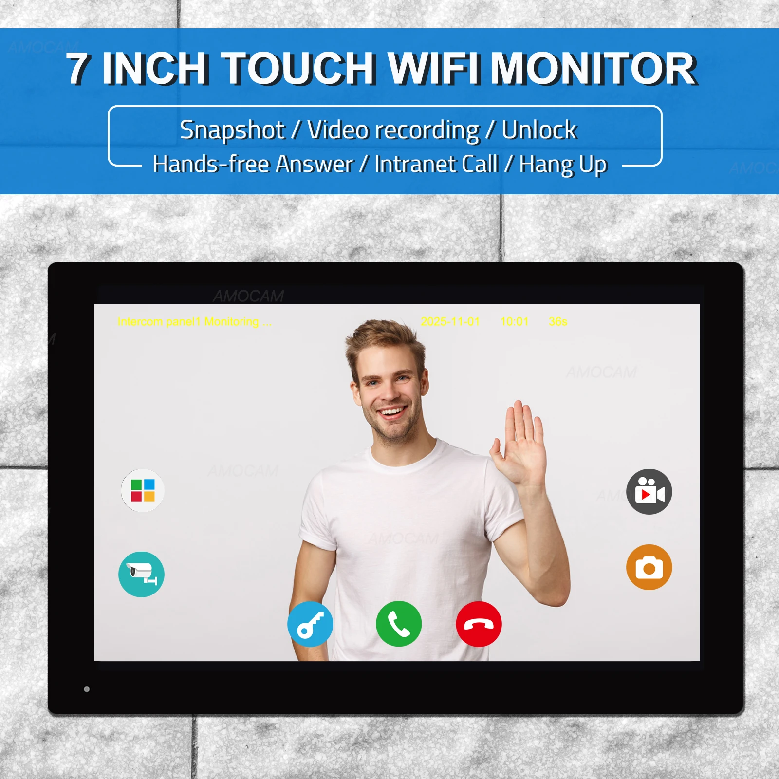 Wireless Wifi Video Doorbell System, 1080P Doorphone Door Camera, 7 Inch Touch Screen, Video Intercom 32GB card for Home 4 Wire