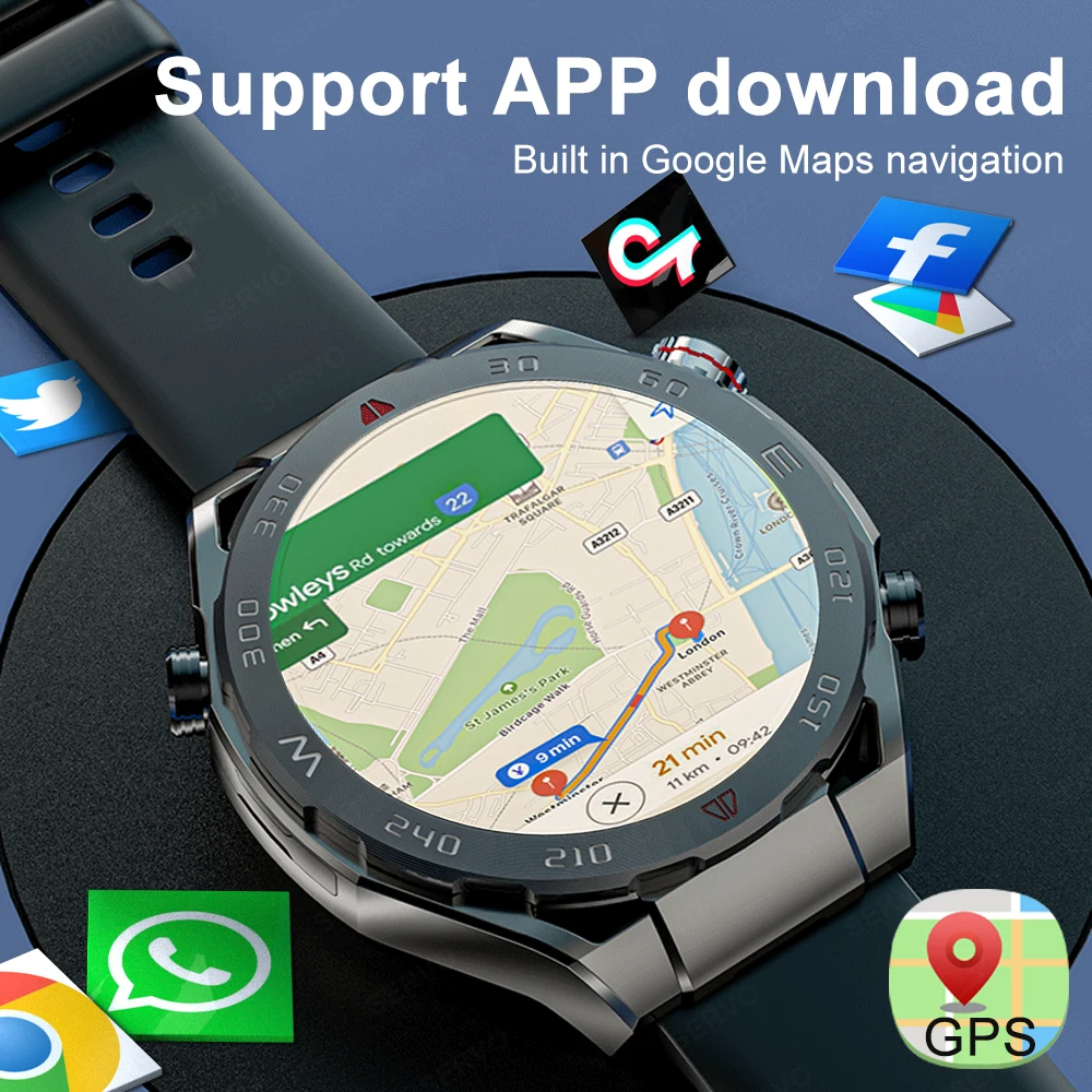 SERVO KOM9 4G SIM Cellular Network Android Smartwatch Phone 1.43'' AMOLED Display 4GB 64GB GPS Camera Men watches Google Play