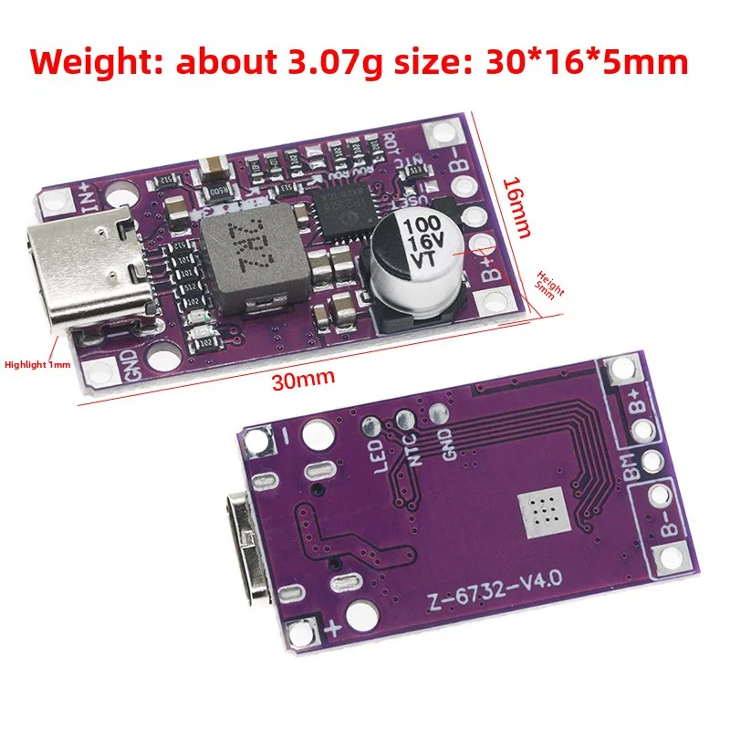 Type-C USB 2-3S BMS 15W 3.7V Lithium Battery Charging Boost Module With Balanced Support QC Fast Charge With Indicator