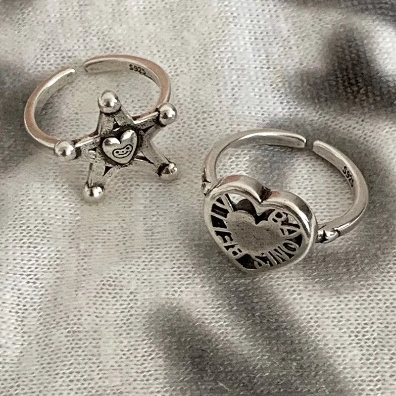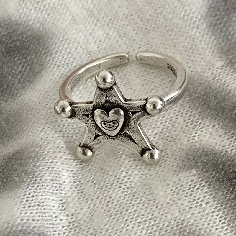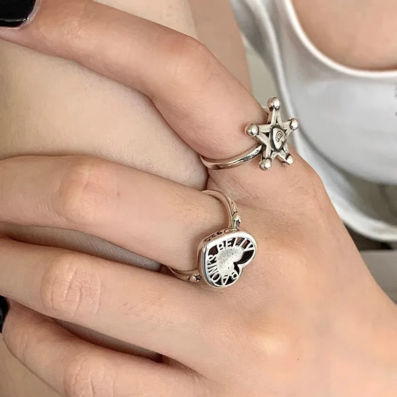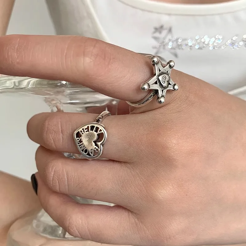 LIVVY Silver Color Vintage Heart Star Shape Adjustable Ring Women Personality Accessories 2023 Trendy Jewelry Accessories Gifts