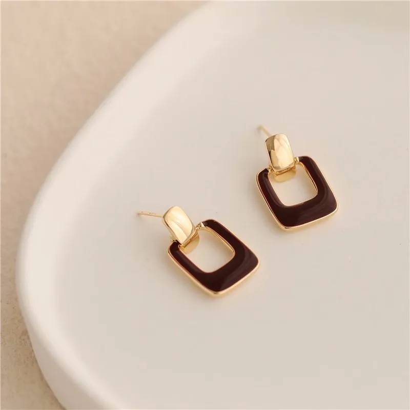 2023 Luxuy Simple Square Enamel Drop Earrings New Jewelry for Women Christmas Party Fashion Accessories
