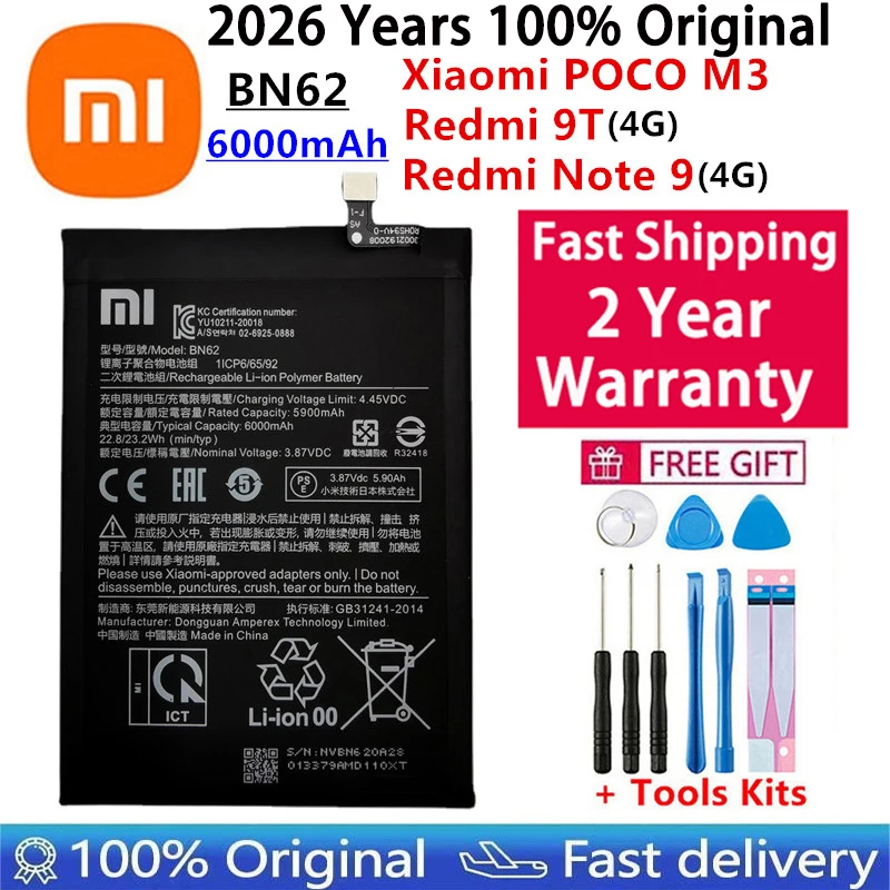 100% Original BN46 BN4A BN53 BN54 BN55 BN59 BN62 Battery For Xiaomi Redmi 7 9T 10X POCO M3 Note 7 8 8T 9 9S 10 10S pro Batteries