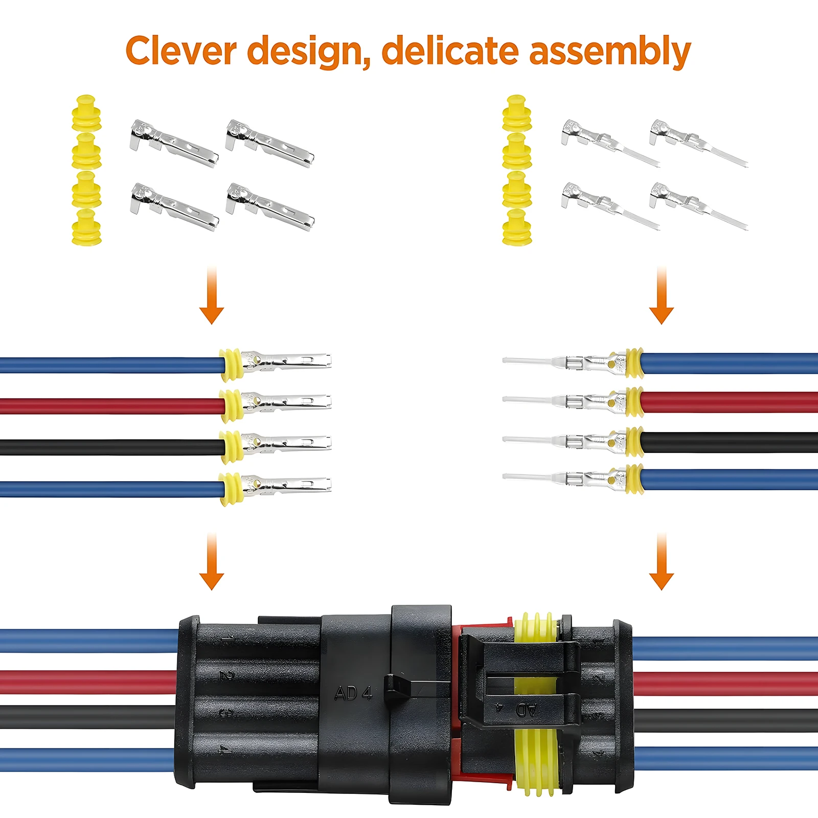 1/4/8Set 1/2/3/4/5/6 Pin Way AMP 1.5 Super Seal IP68 Waterproof Electrical AMP Automotive Wire Connector Plug for Car Motorcycle