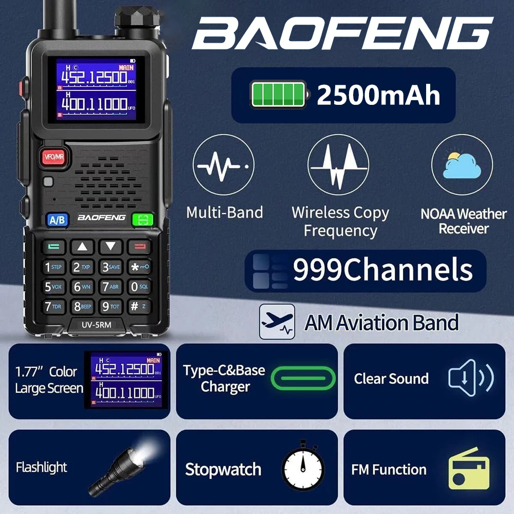 Baofeng UV-5RM Walkie Talkie Long Range Wirless Copy Frequency Two Way Radio Type-C Charger Upgraded UV 5R Full Band Transceiver