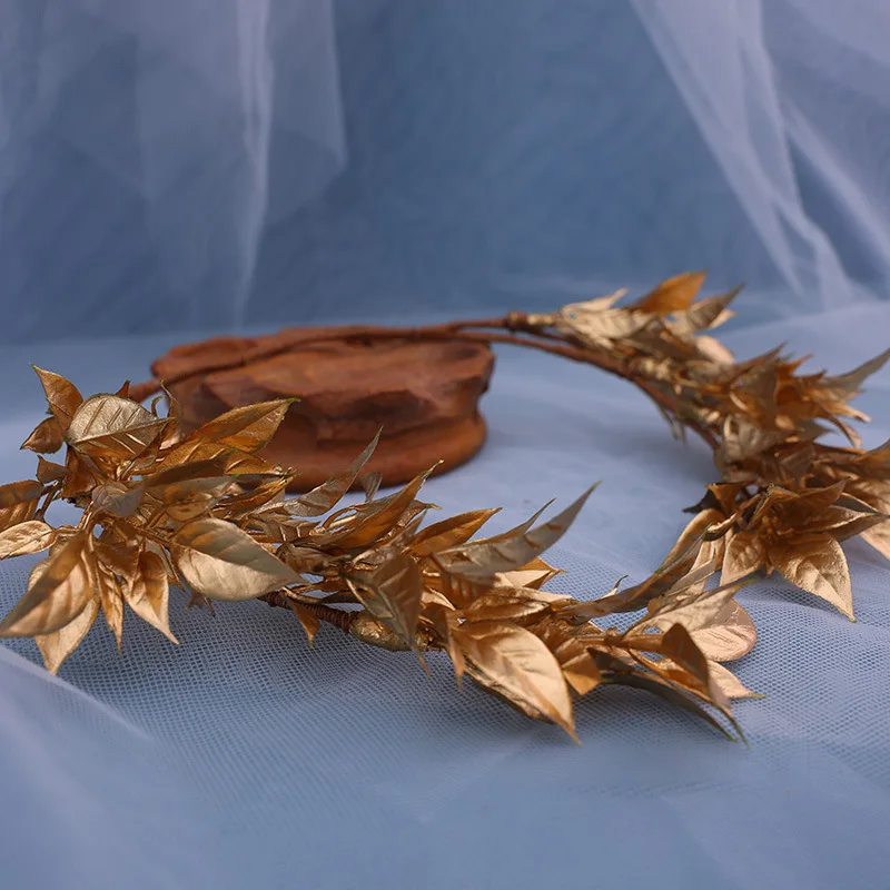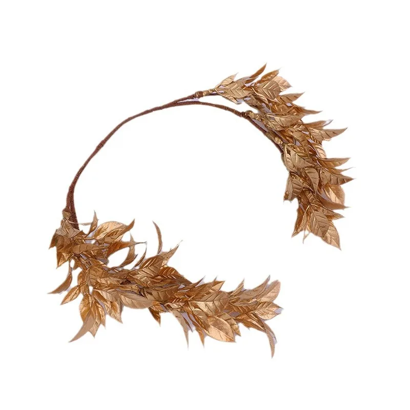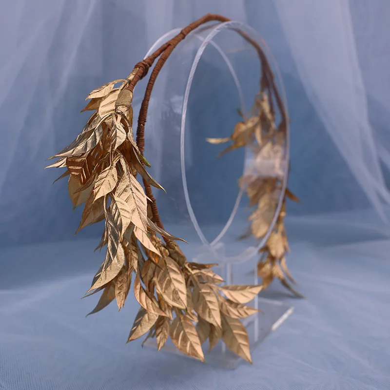 New Fashion Design golden leaf bride wreath headband hair accessories wedding gold maple leaf handmade braided headbands crown