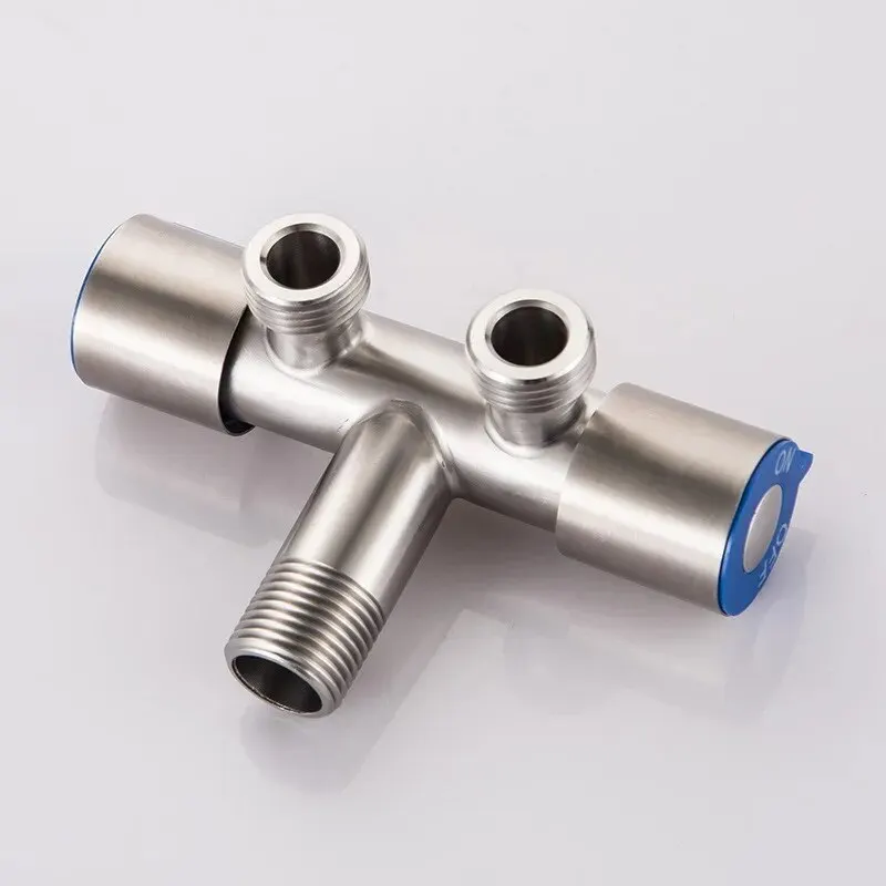 304 Stainless Steel Single Cold Water 1 In 2 Out Bathroom Toilet Angle Valve Washing Machine Double Outlet Water Tap