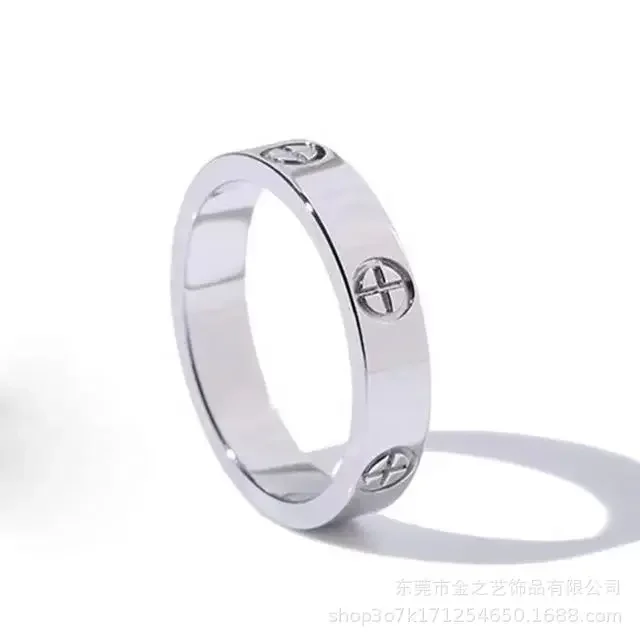 2023 Trendy Stainless Steel Rose Gold Love Cross Ring for Women Men Couple Crystal Rings Luxury Brand Jewelry Wedding Band Gift