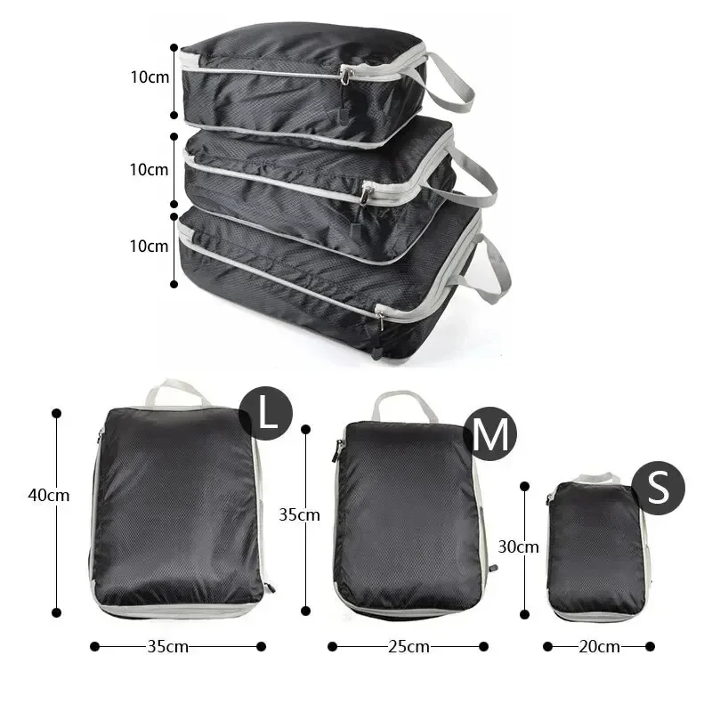 3Pcs/set Black/Blue/Grey Compressible Travel Storage Bag Portable Large Capacity Storage Bag Suitcase Luggage Packing Cubes