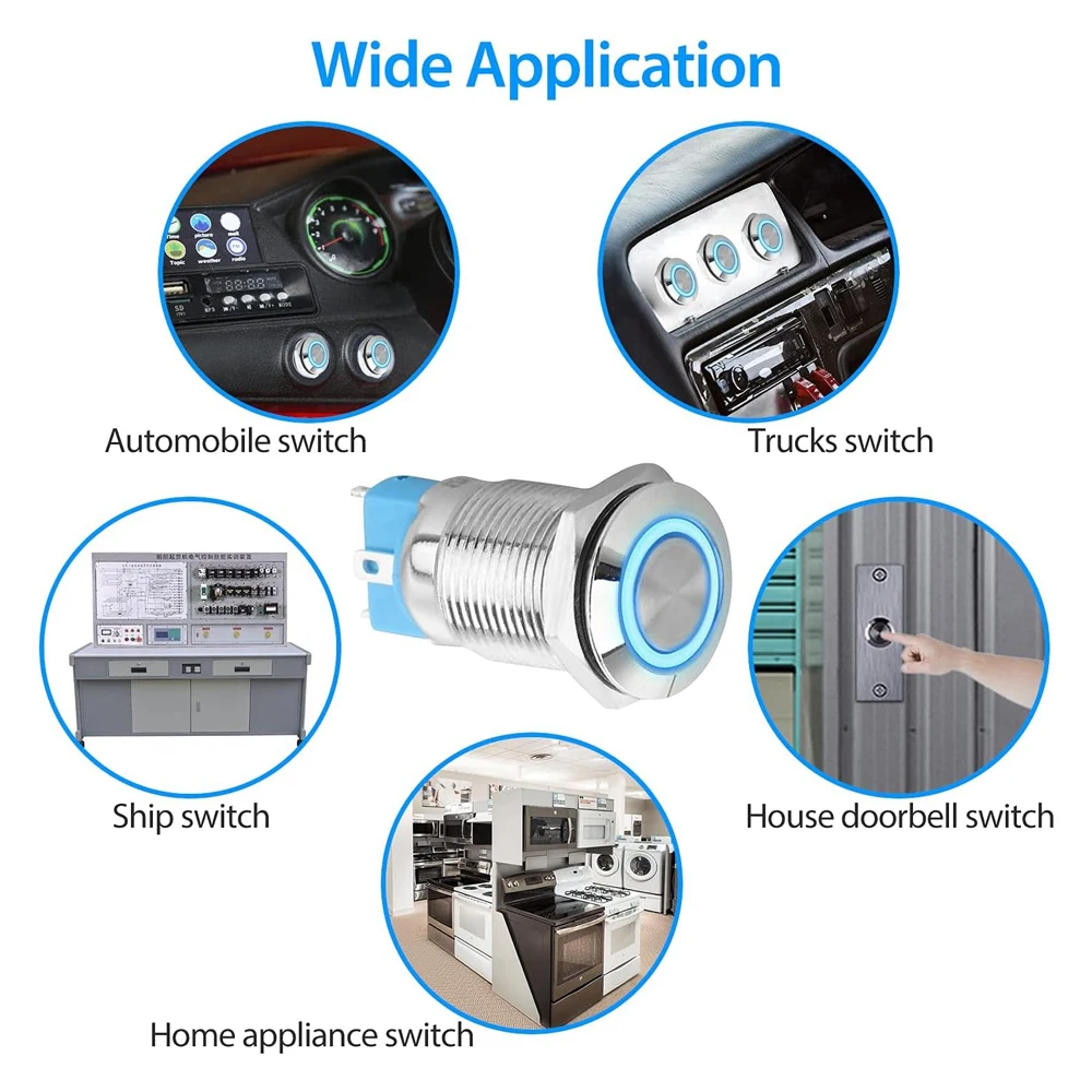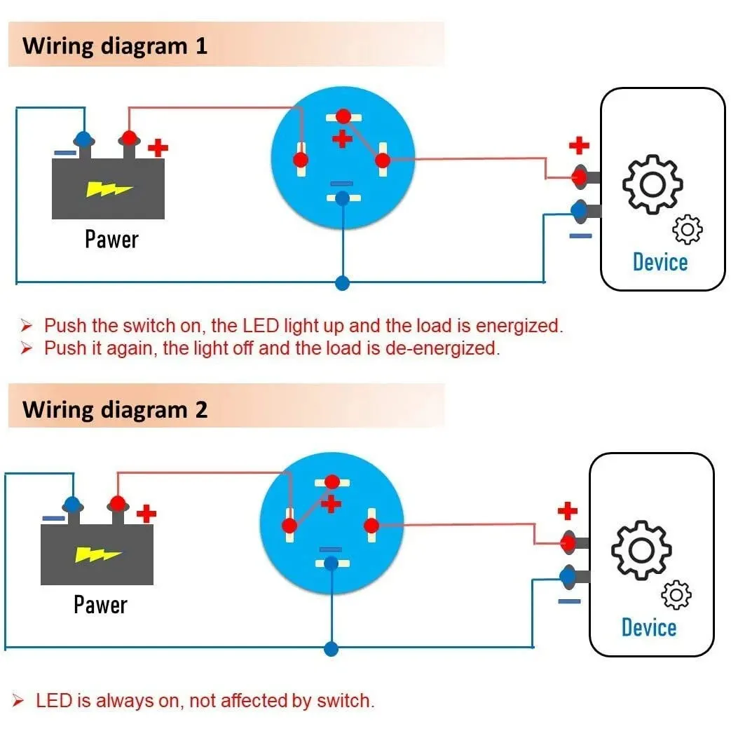 2Pcs DC 12V/24V Metal Latching Push Button Switch, 4 Pin Car RV Truck Boat SPDT ON/OFF Switch, Waterproof Self-Locking Round
