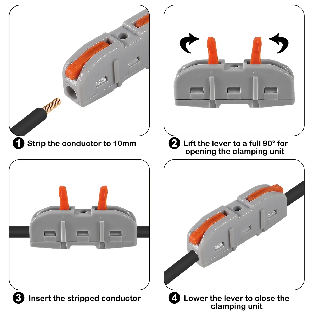 Wire Connectors1 to 1 Inline Electrical Lever Wire Connectors Nuts Push-in Quick Conductor Compact Splicing Connectors 28-12 AWG