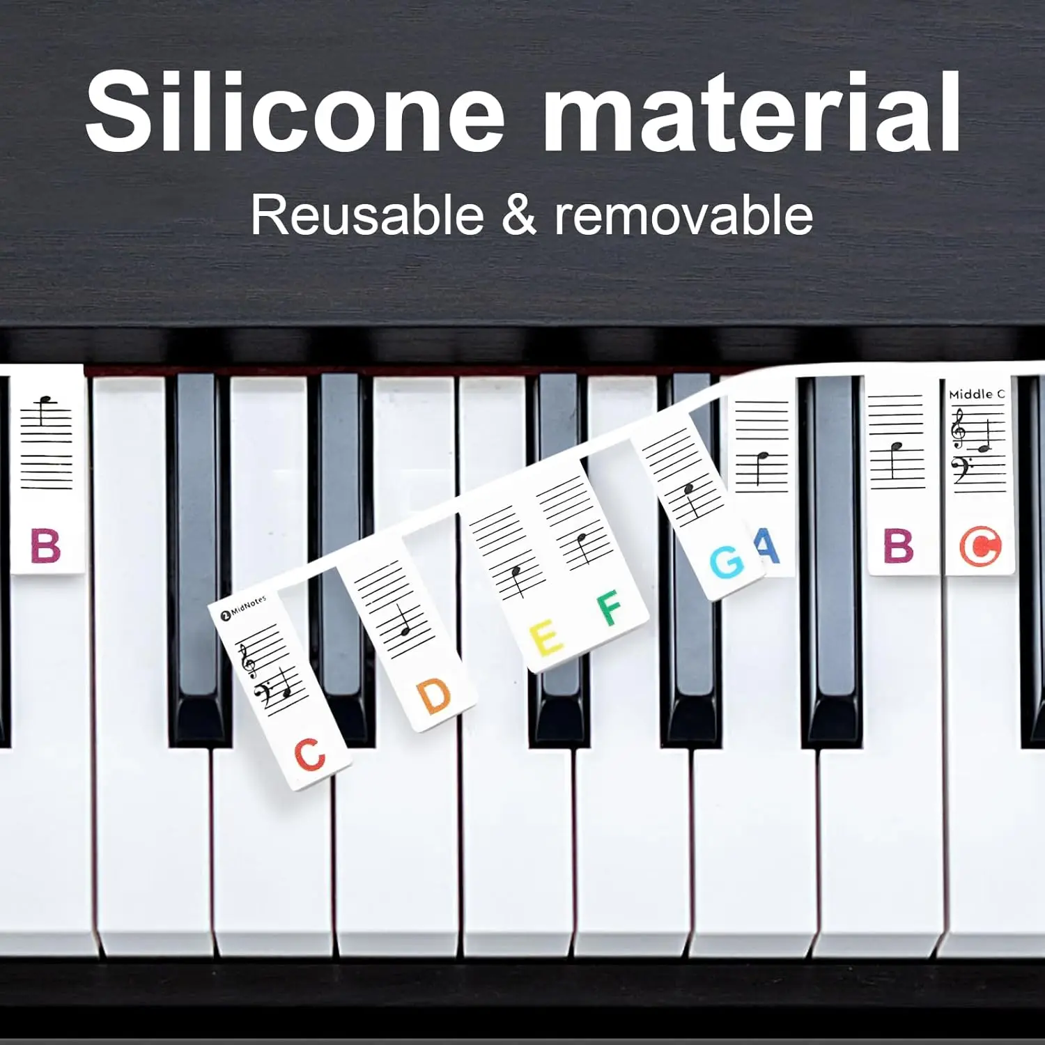 88/61 Key Silicone Piano Keyboard Note Labels - Removable Note Guide for Beginners, Reusable Waterproof Piano Stickers
