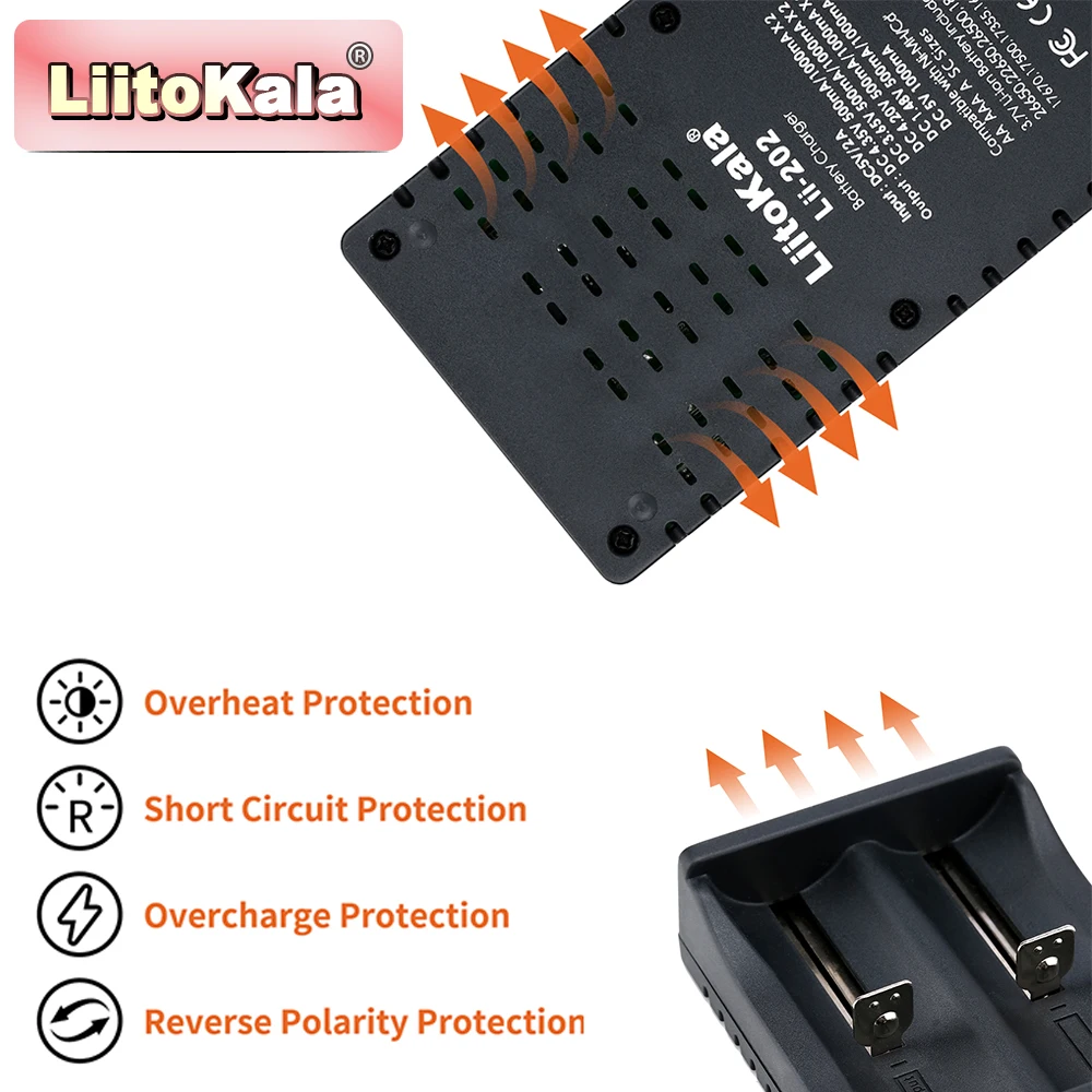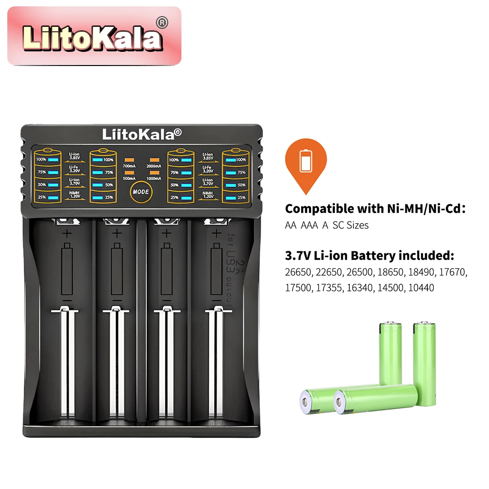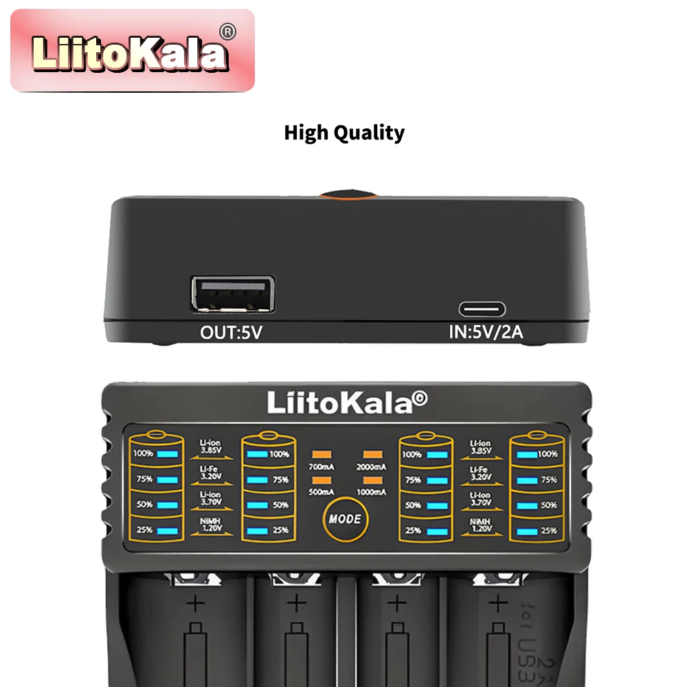 Liitokala Lii-202 Lii-402 Universal Smart Battery Charger | for 18650 21700 Li-ion | 3.2V/3.7V/3.85V | 5V 2A USB-C Output