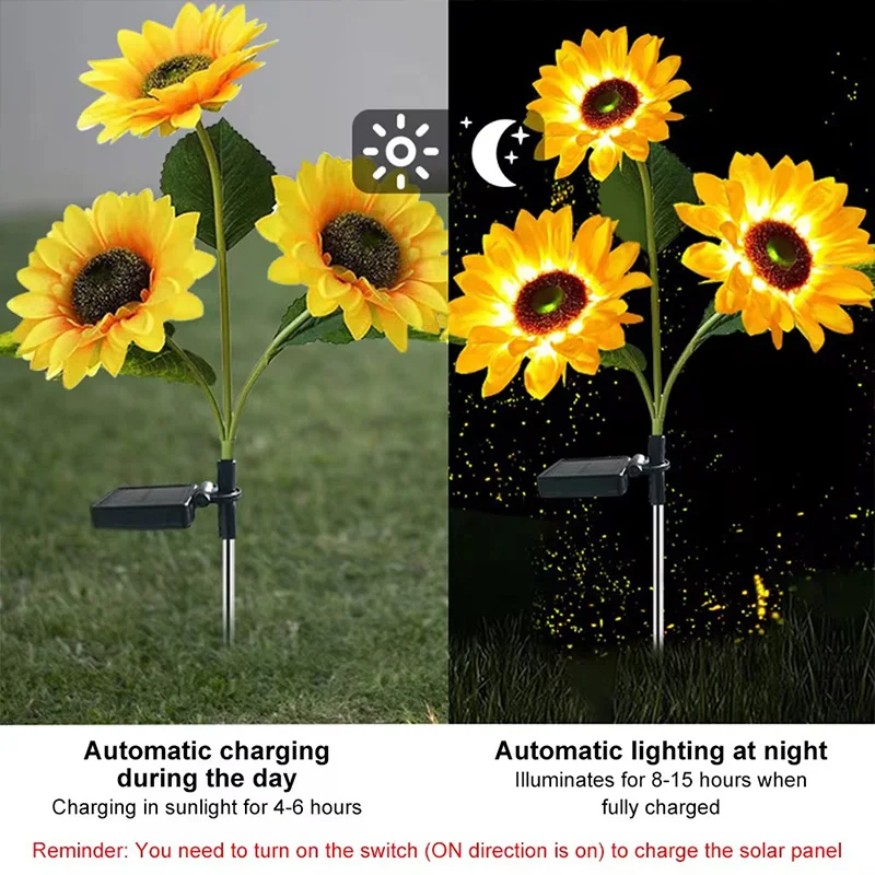 Outdoor Solar Simulation Sunflower Light 1/3 Heads Waterproof Lawn Lights Landscape Lamp For Home Decor Garden Yard Flower Light