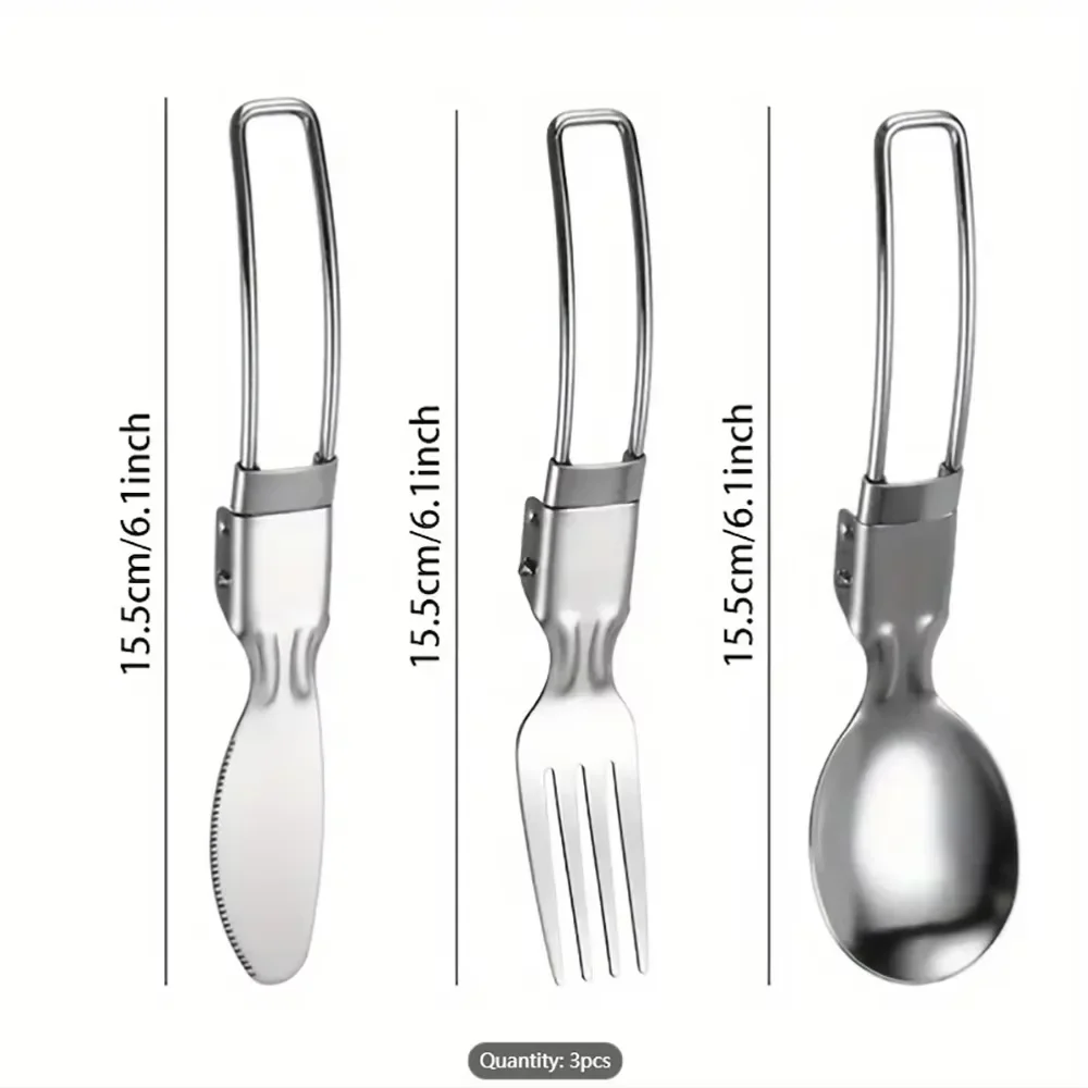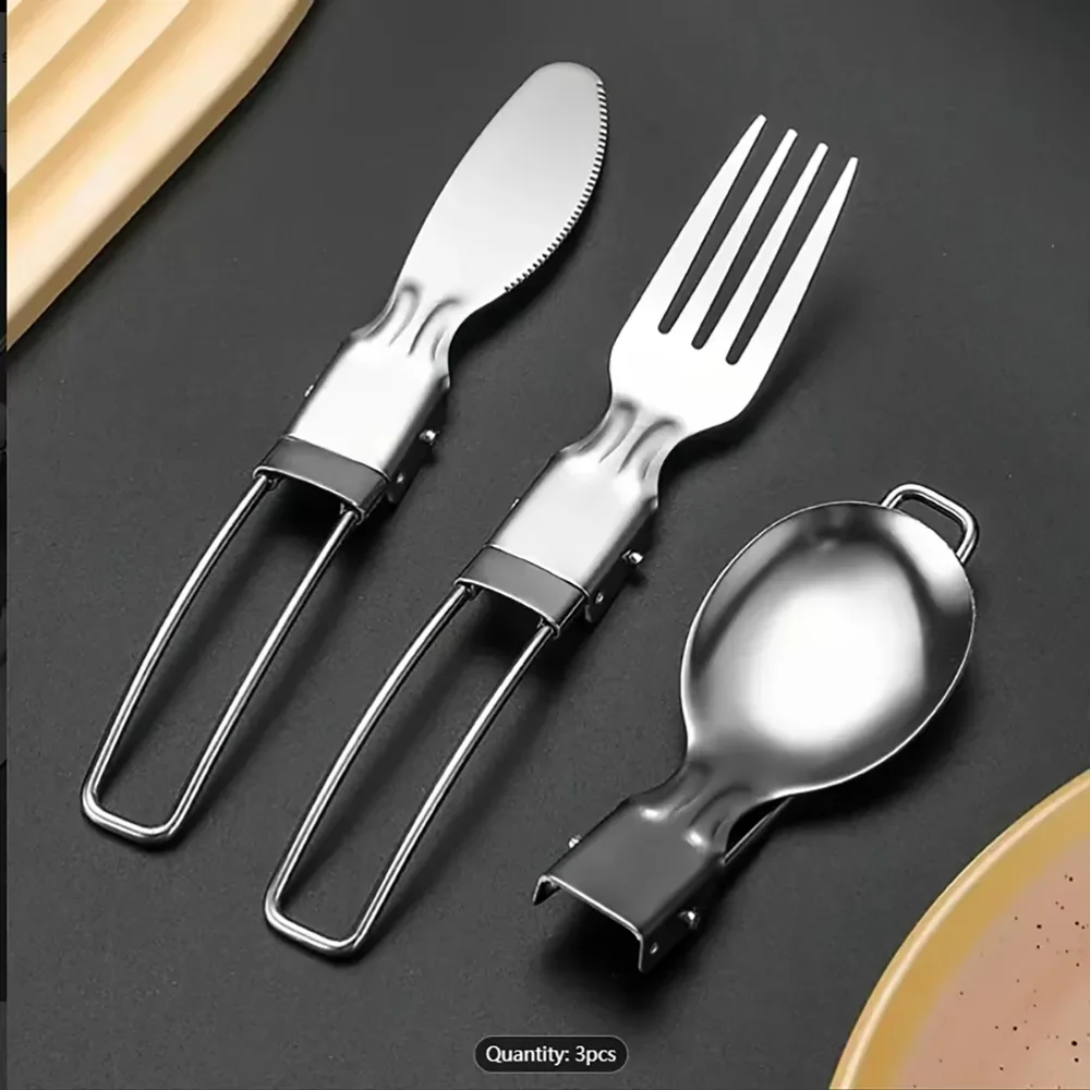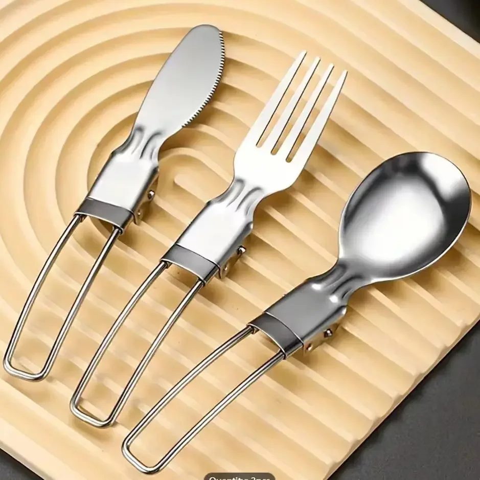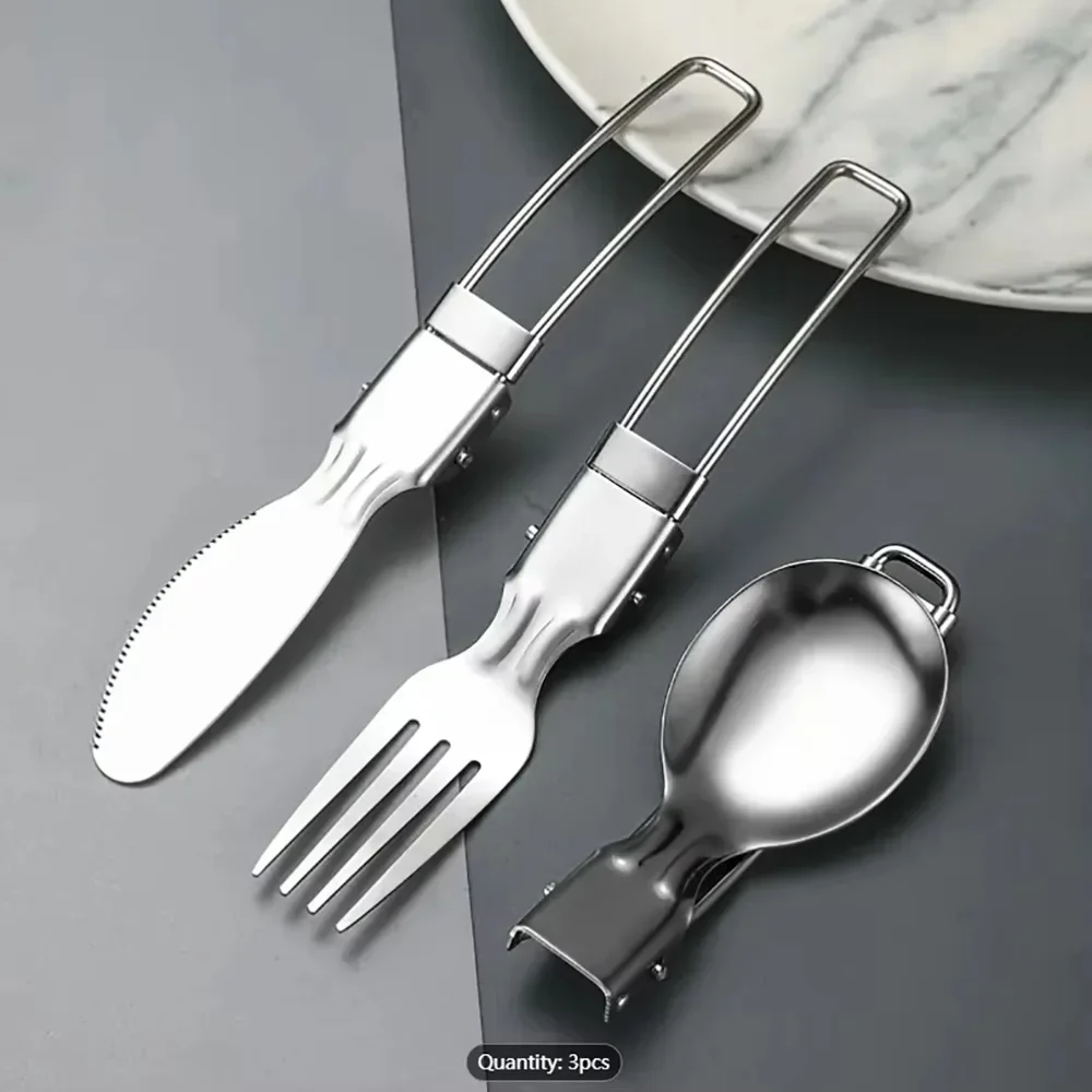 3PCS/1Set Portable Outdoor Camping Travel Picnic Foldable Stainless Steel Cutlery Set Spoon Fork Knife Tableware Outdoor Travel