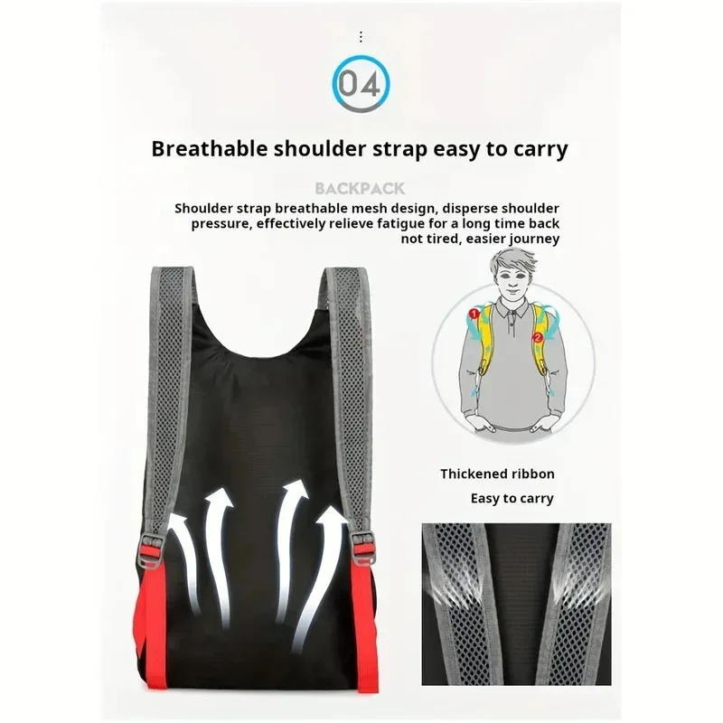 Hiking Backpack Travel Lightweight Folding Waterproof Storage Backpack Outdoor Sports Solid Color Large Capacity Zipper Backpack