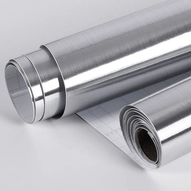 40cm fireproof and waterproof brushed silver wallpaper, modern refrigerator, living room, kitchen countertop, self-adhesive