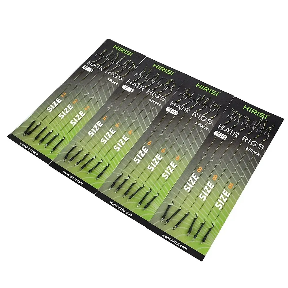 Hirisi 6pcs Carp Fishing Accessories Hair Rig Fishing Hook Set Ready Made Tied Rigging With Fishing Line Boilie Hook TS113
