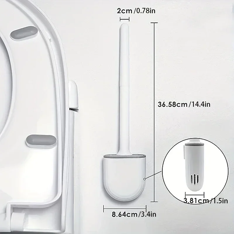 Wall-Mounted Silicone Toilet Brush Set-Easy-Install, Long-Handle,No Dead Corners,Efficient Cleaning,Portable Design with Holder