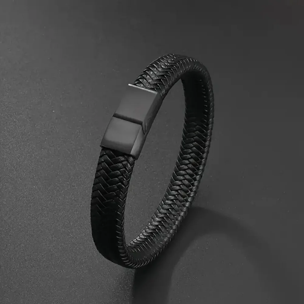 Black PU Leather Magnetic Bracelet Men's Mature and Stable and Elegant Giving Men The Best Gift for Men