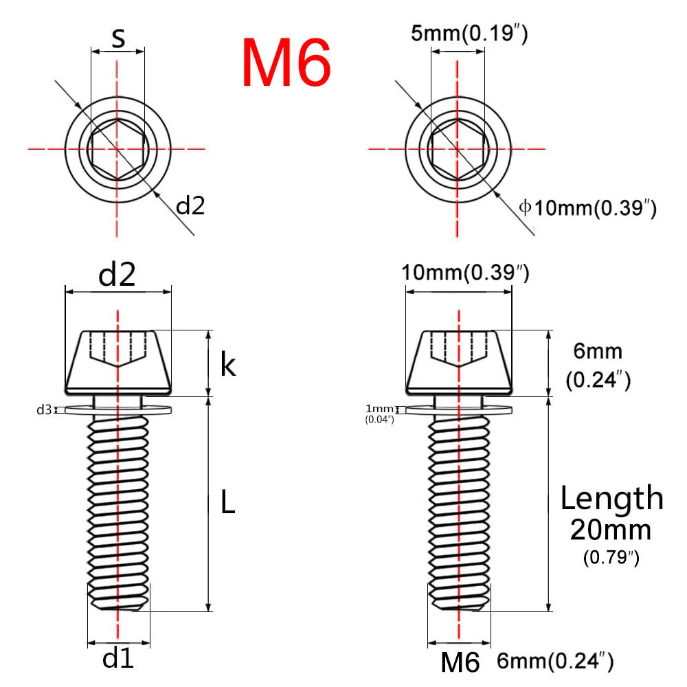 6PCS Stainless Steel Bolt M5/M6 x 20mm Bicycle Handlebar Stem Screw With Washer For MTB Road Bike