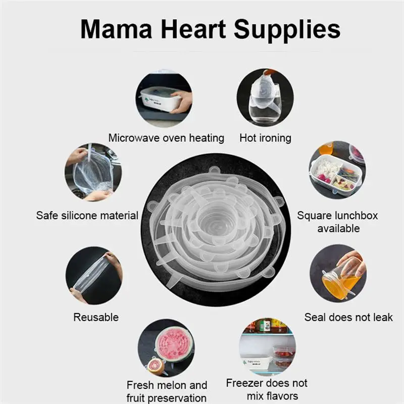 Silicone Six-Piece Set Fresh-Keeping Cover Stretch 6-Piece Set Bowl Cover Refrigerator Microwave Sealed Fresh-Keeping Film