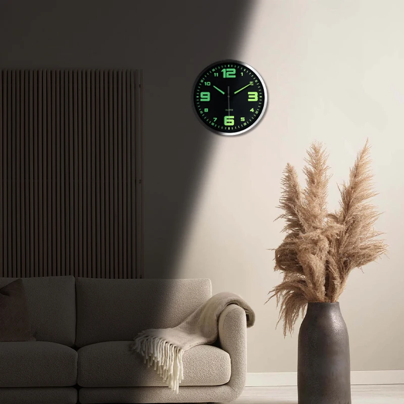 A unique luminous plastic glass wall clock, 8-16 inch modern round silent glow clock, powered by AA batteries, suitable for game