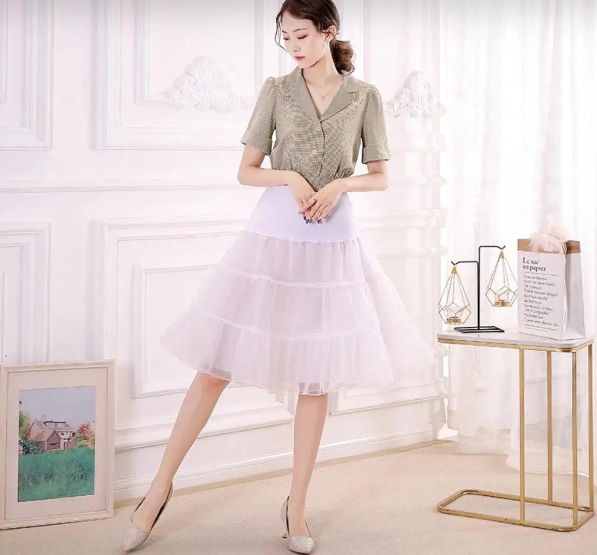 Women's Lolita Cosplay Petticoats White Organza Crinoline Bridal Underskirt Women Halloween Petticoat Rockabilly Tutu Skirts