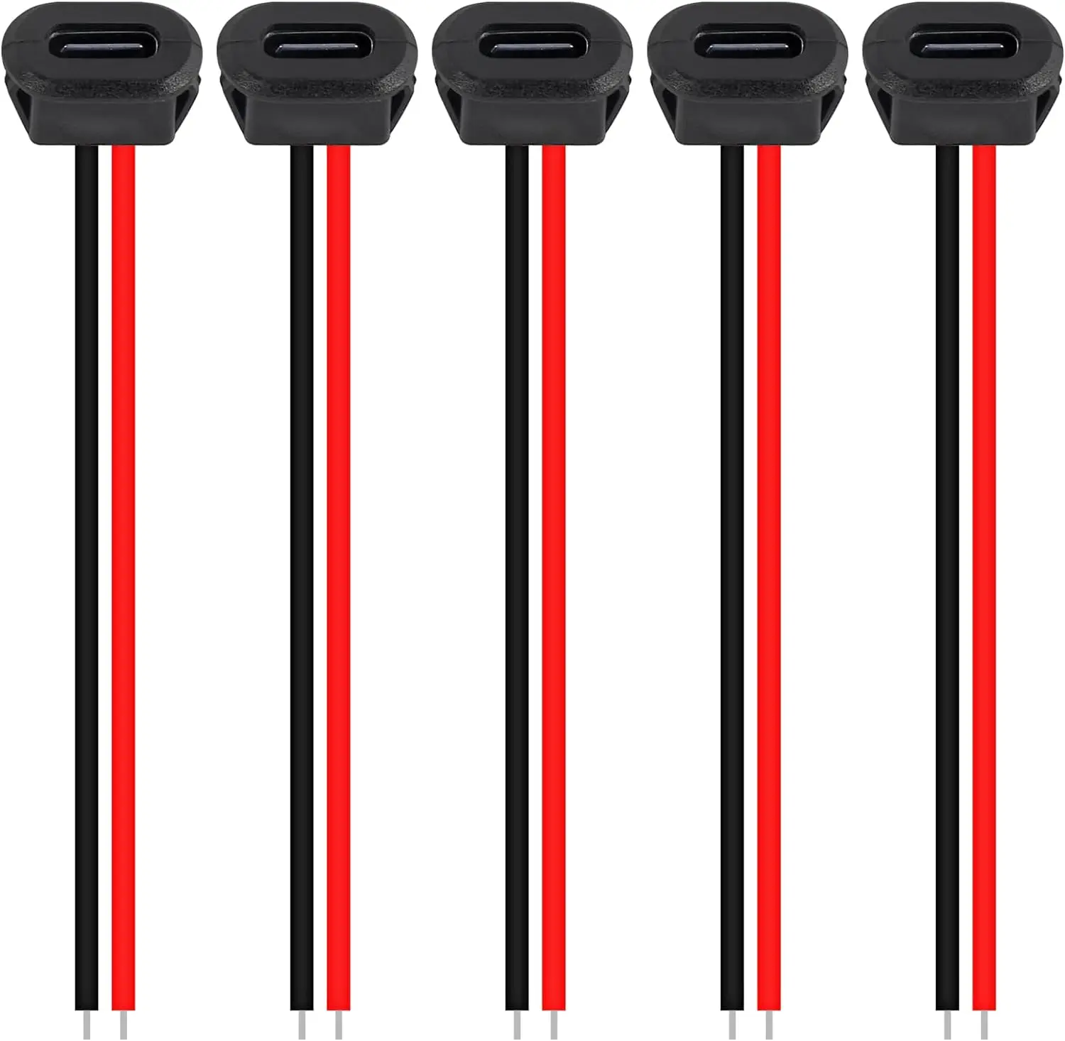 10PCS Type-C Female 2Pin USB Connector Type-C Waterproof with Female Socket Fast Charging Jack Charging Port USB-C Charger Plug