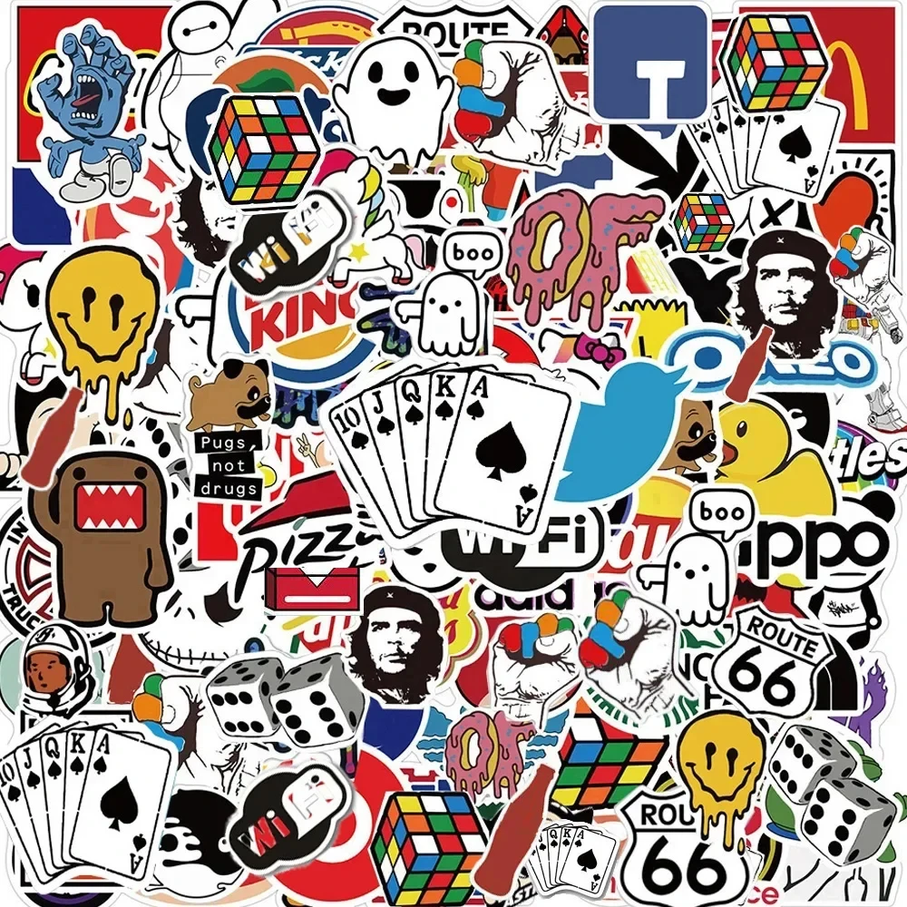 50/100/200Pcs Fashion Cool Brand Logo Stickers Aesthetic Motorcycle Phone Car Skateboard Laptop Sticker Decal Classic Kids Toy