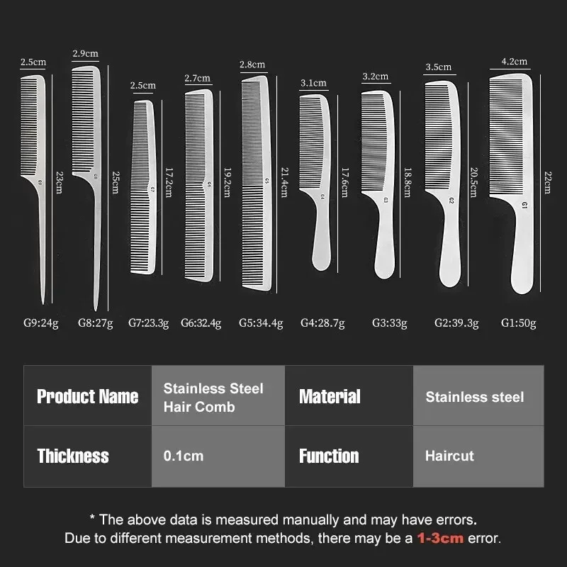 Barber Professional Stainless Steel Women Hairdressing Comb Anti-static Men's Haircut Clipper Ultra-thin Comb Salon Styling Tool