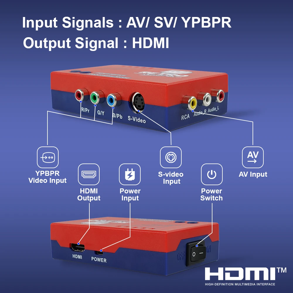 RetroScaler2x AV to HDMI® Converter and Line-doubler For Retro Game Consoles PS2 N64 NES Dreamcast Saturn MD1 MD2