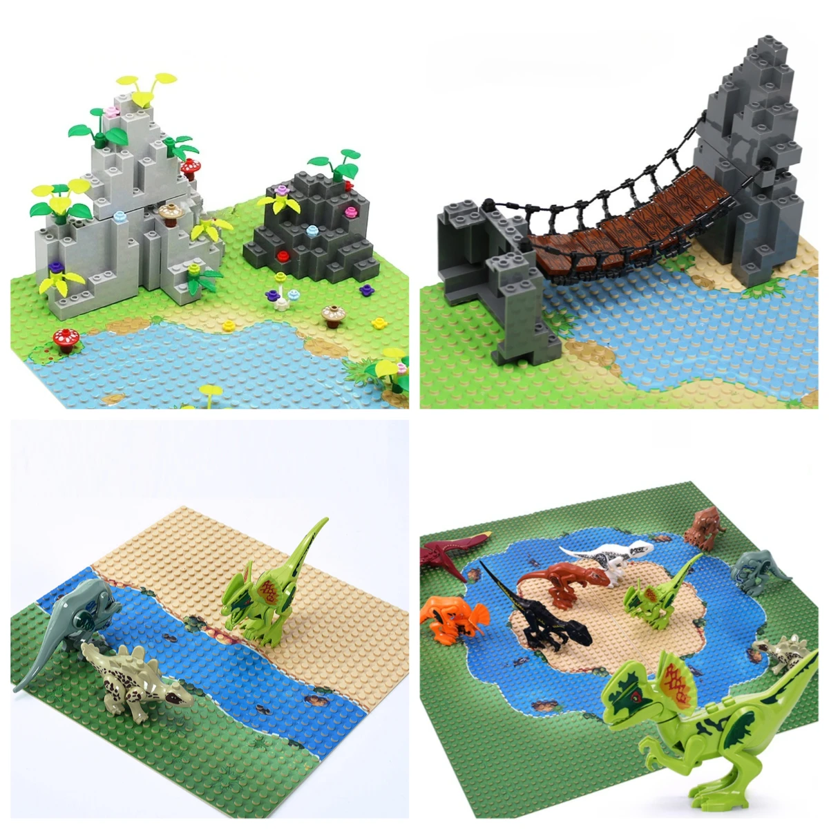 Small-Part Building Blocks with Island Grassland River Military Scene Pattern Toy Accessories for Children's Educational Gifts