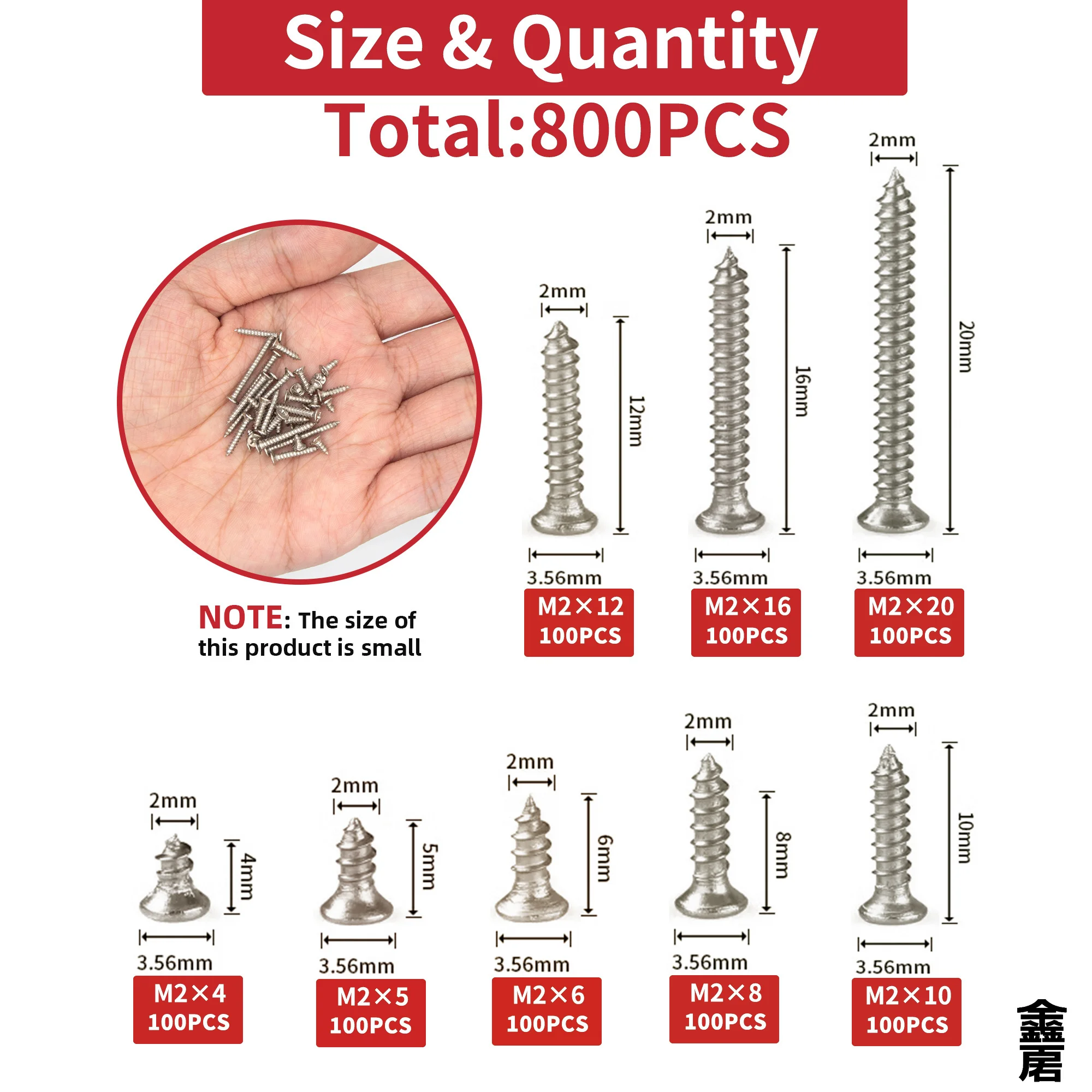 400pcs/800pcs Self Tapping Wood Screws Set M2 Phillips Flat Head Sheet Metal Screw Self Lock Nut Wood Thread Nail Screw Sets