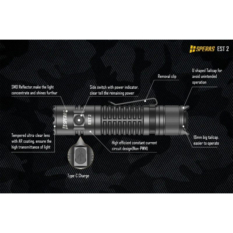 ALI shop - rezultati pretrage ... ... SPERAS EST2 SST-40 LED 1900Lm Type-C Rechargeable Flashlight Protable Powerful 18650 Torch EDC Flash Light IPX68 for Camping ::: 2021 ::: :::