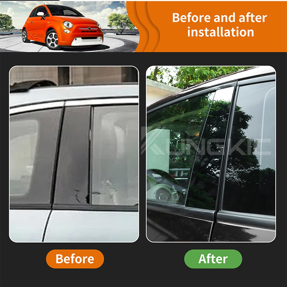 B Pillars Sticker For Fiat 500 08-23 Abarth 595 695 2012-2017 2018 2019 2020 2021 2022 2023 Carbon Fiber Pattern Glossy Black