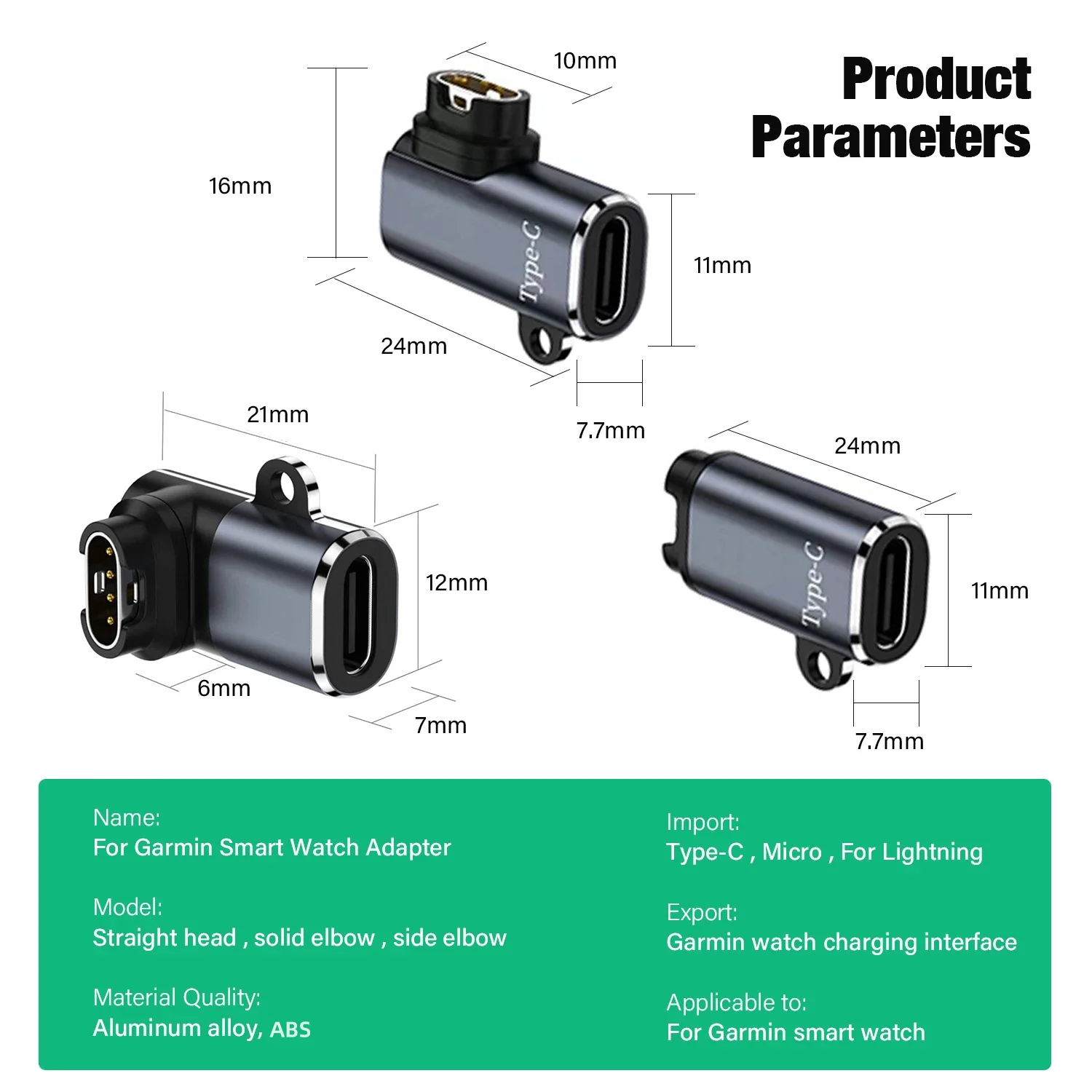 Type C/Micro/IOS USB to 4pin Charger Adapter Connector for Garmin Fenix 7/6/5/7X/6X/5X/ Venu 2 plus Watch Charging Converter