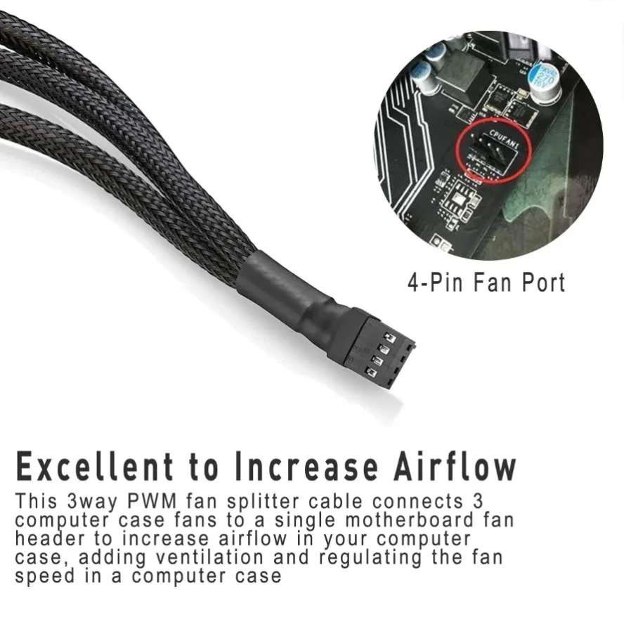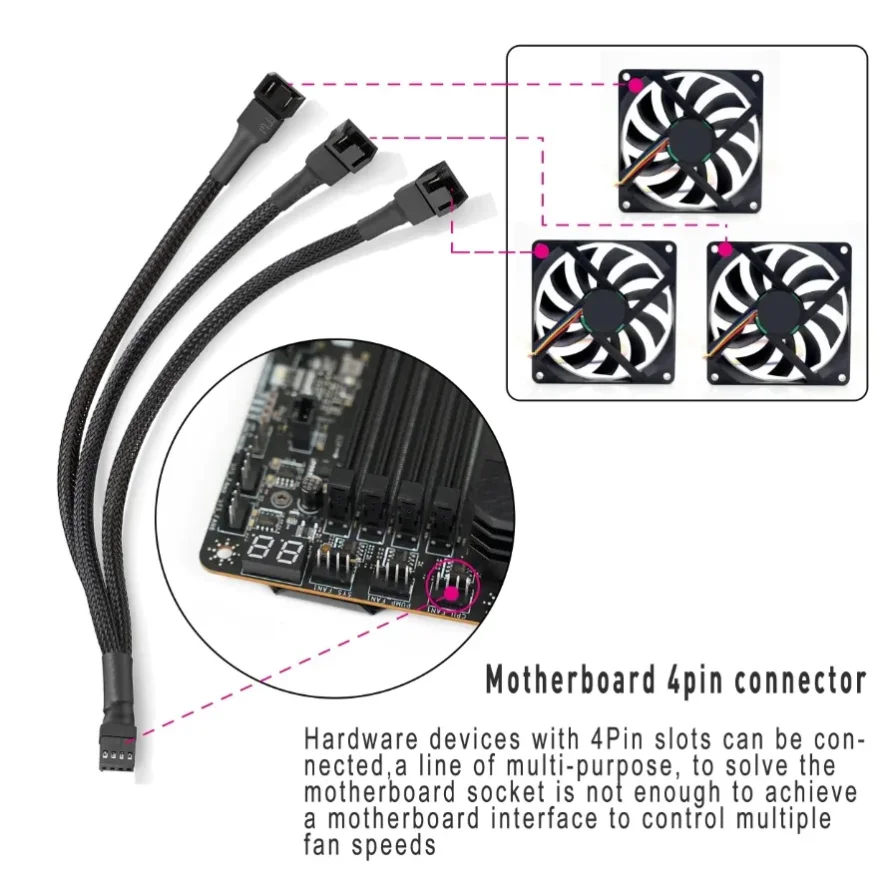 PWM Temperature Controlled Cooling Fan Expansion Cable 1 To 4 Way Computer Cable 4Pin PWM Fan Splitter Cable PC Fan Splitter