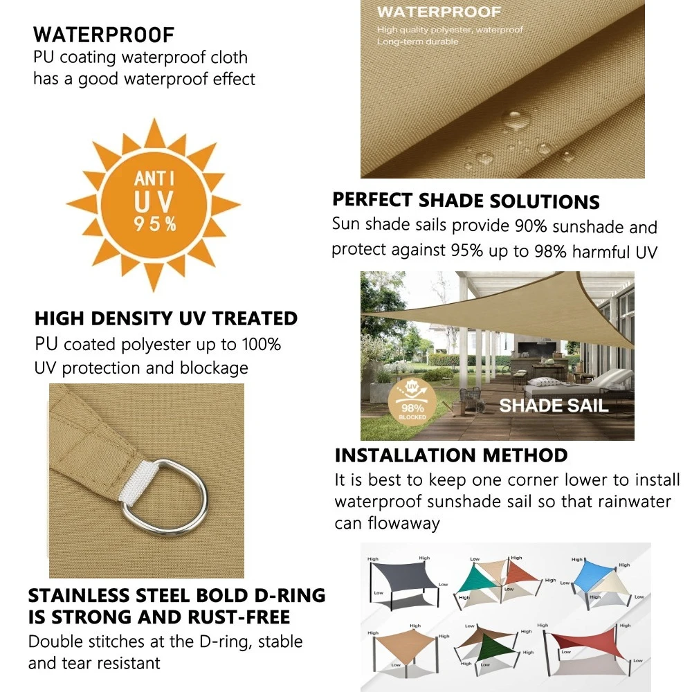 5x5x5/2x2x2M Waterproof Sun Shelter Triangle Sunshade Protection Outdoor Canopy Garden Patio Pool Shade Sail Awning Shade Cloth