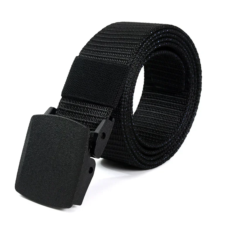 Cinturón de lona para hombre, hebilla de plástico, cinturón táctico de nailon sin Metal, cinturón para mujer