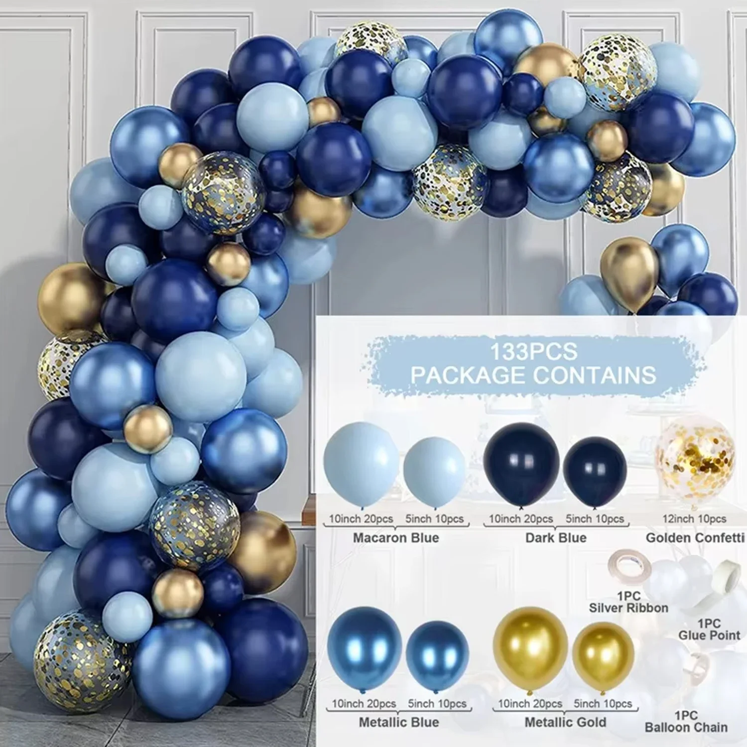 Blue White Metallic Balloons Garland Kit Gold Confetti Balloon Arch for Baby Shower Birthday Graduation Wedding Party Decoration