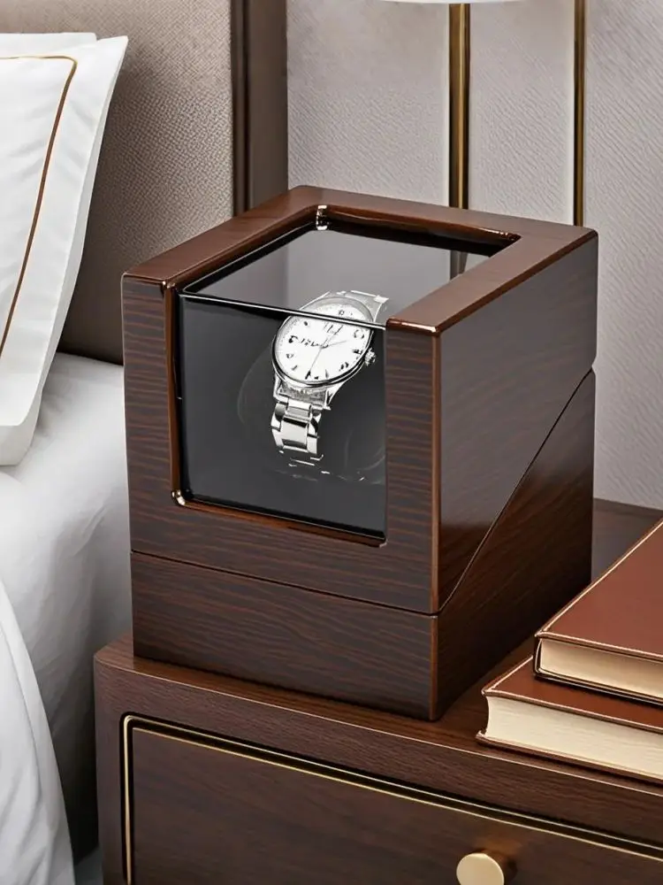 Embers Luxry Single Watch Winder Battery Wooden Shaker Watch Box Automatic Winder Glass Storage Case Mabuchi Motro