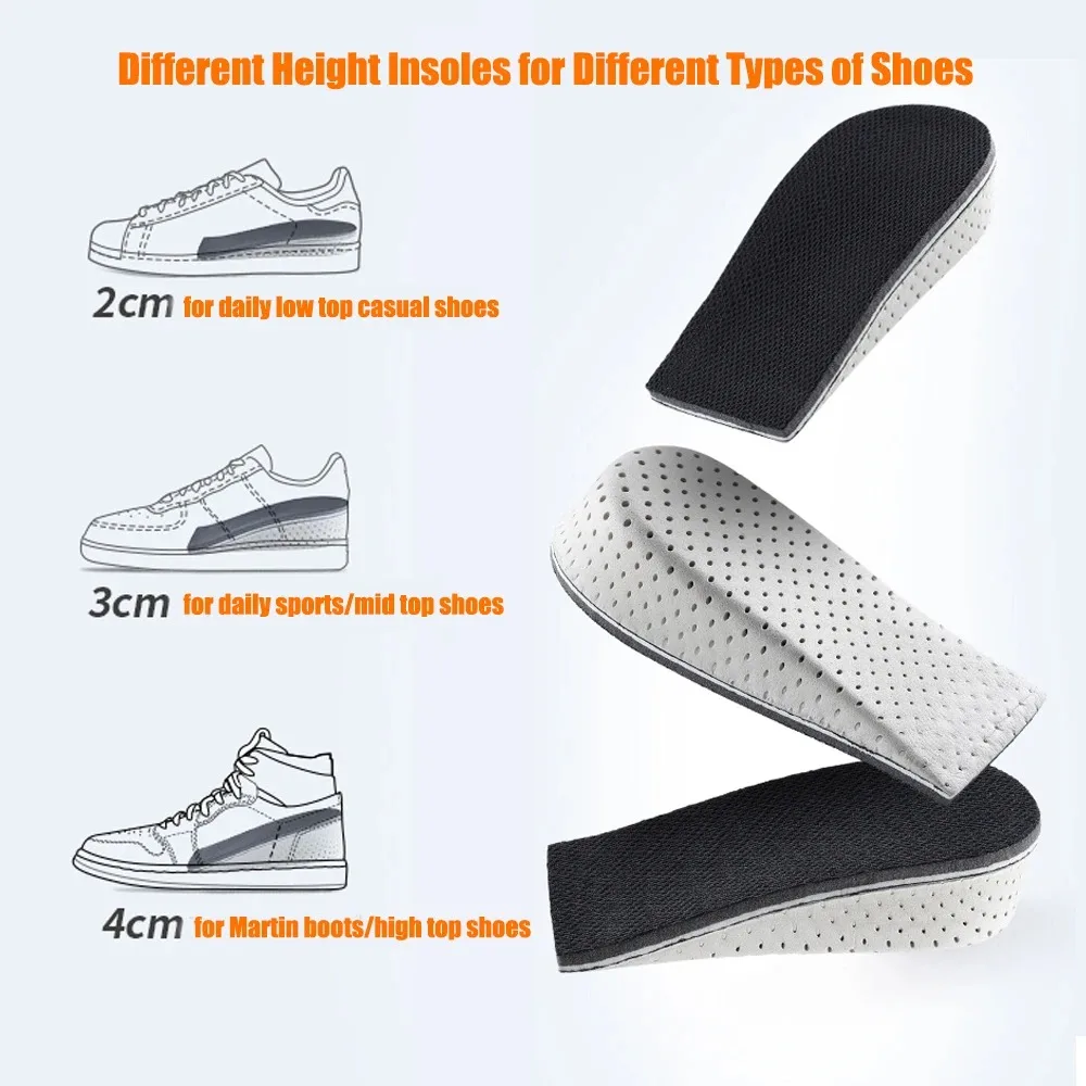 Height Increase Insole 1 Pair Hard Breathable Memory Foam Heel Lifting Inserts Shoe Lifts Shoe Pads Elevator Insoles for Uni
