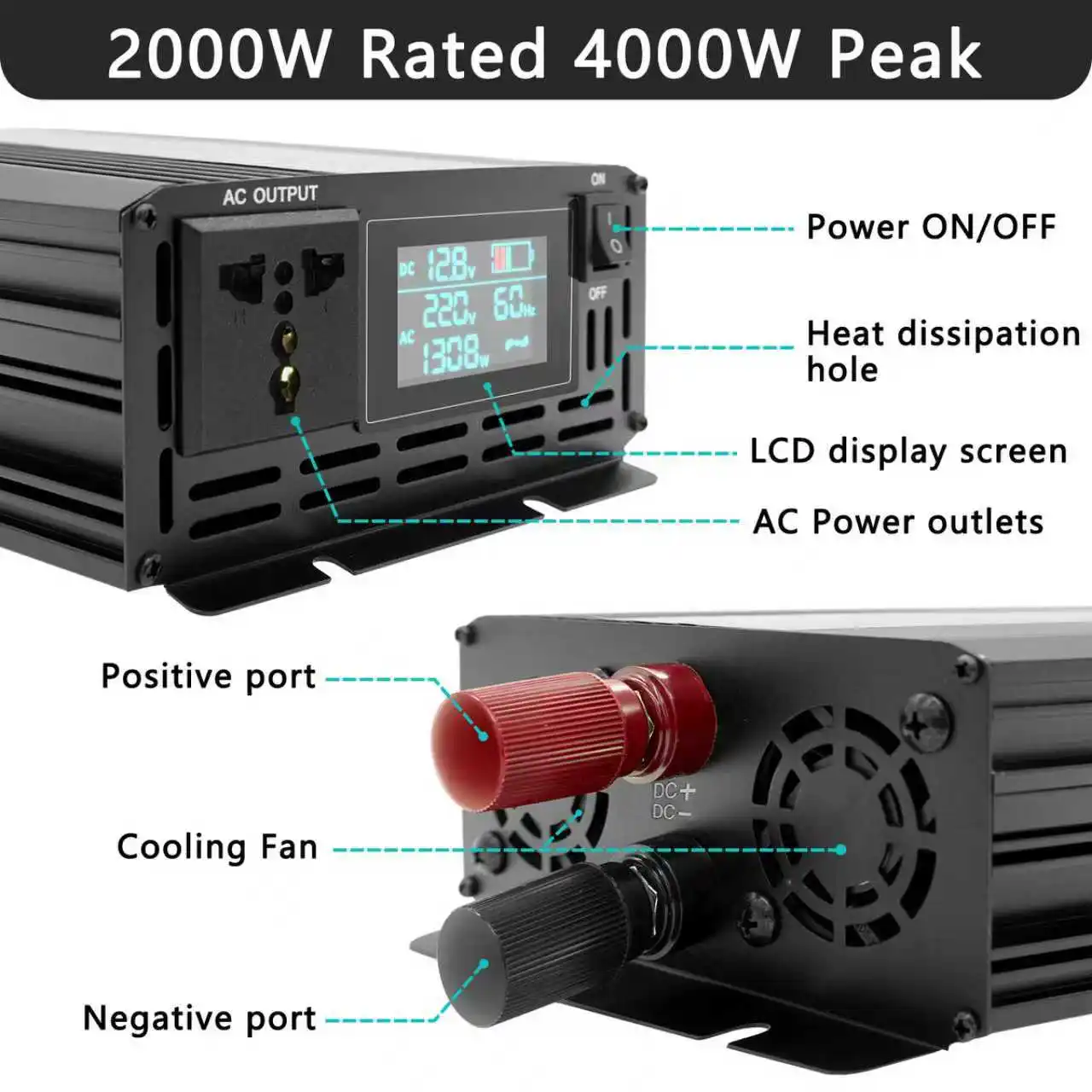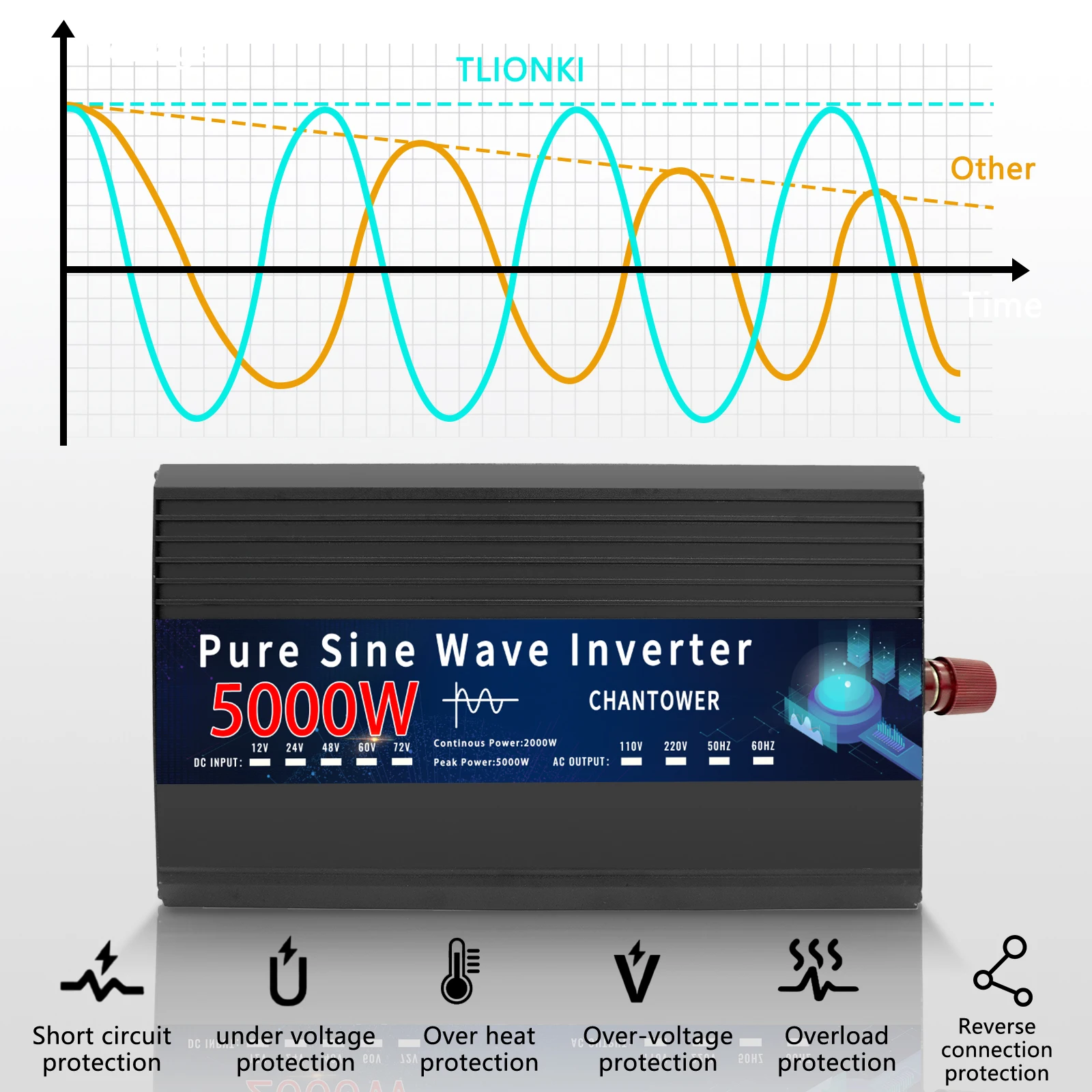 Pure Sine Wave Inverter 12V 220V 24V 110V 1000W 1600W 3000W 4000W 5000W DC To AC Portable Power Converter Car Solar Inverter