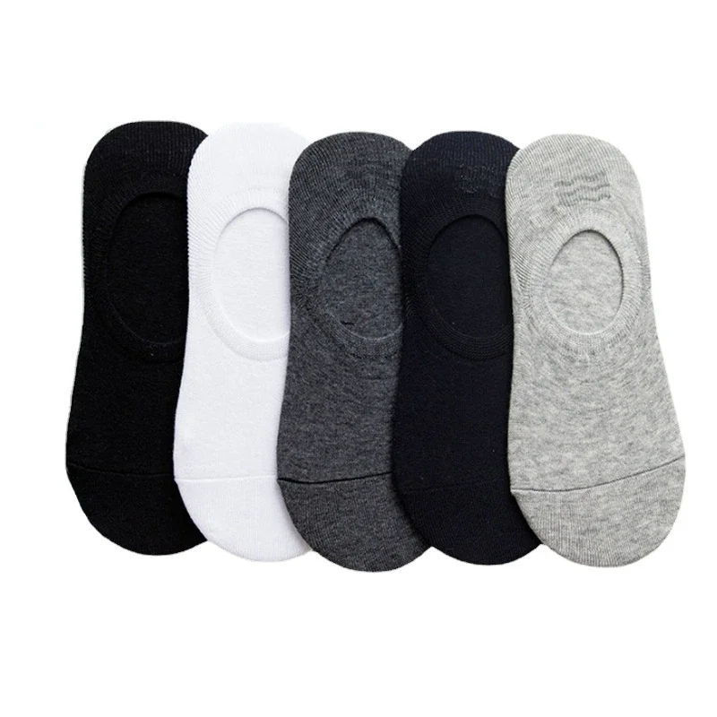 Socks Men Short No Show Low Cut Ankle Cotton Thin Black White Multipack Non-slip Silicone Summer Breathable Invisible 5pair /Lot