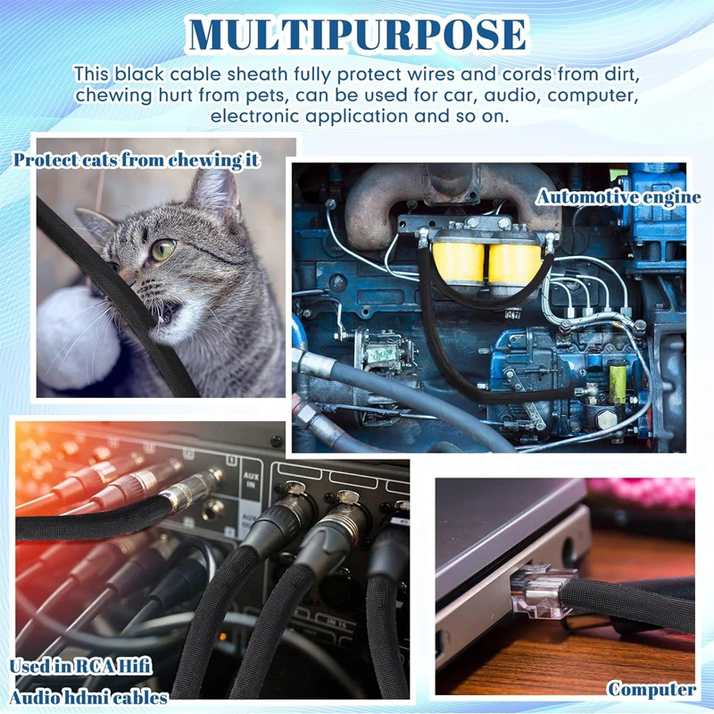 9.84ft~32.8ft PET Expandable Braided Cable Sleeve Desk Cord Organizer Cable Hider Wire Sleeving For Audio Video Automotive Wire