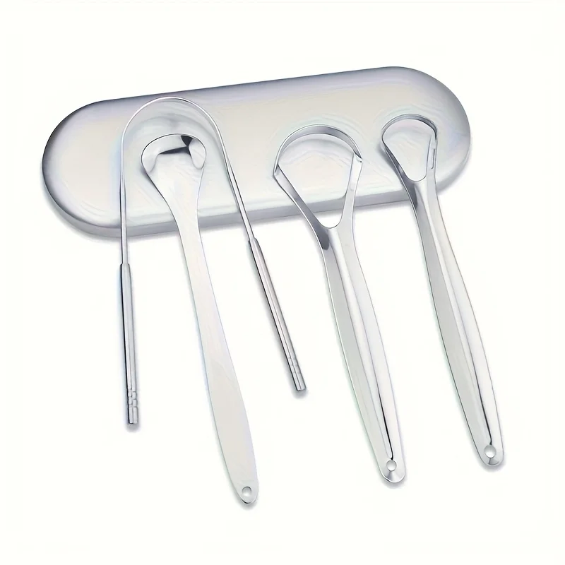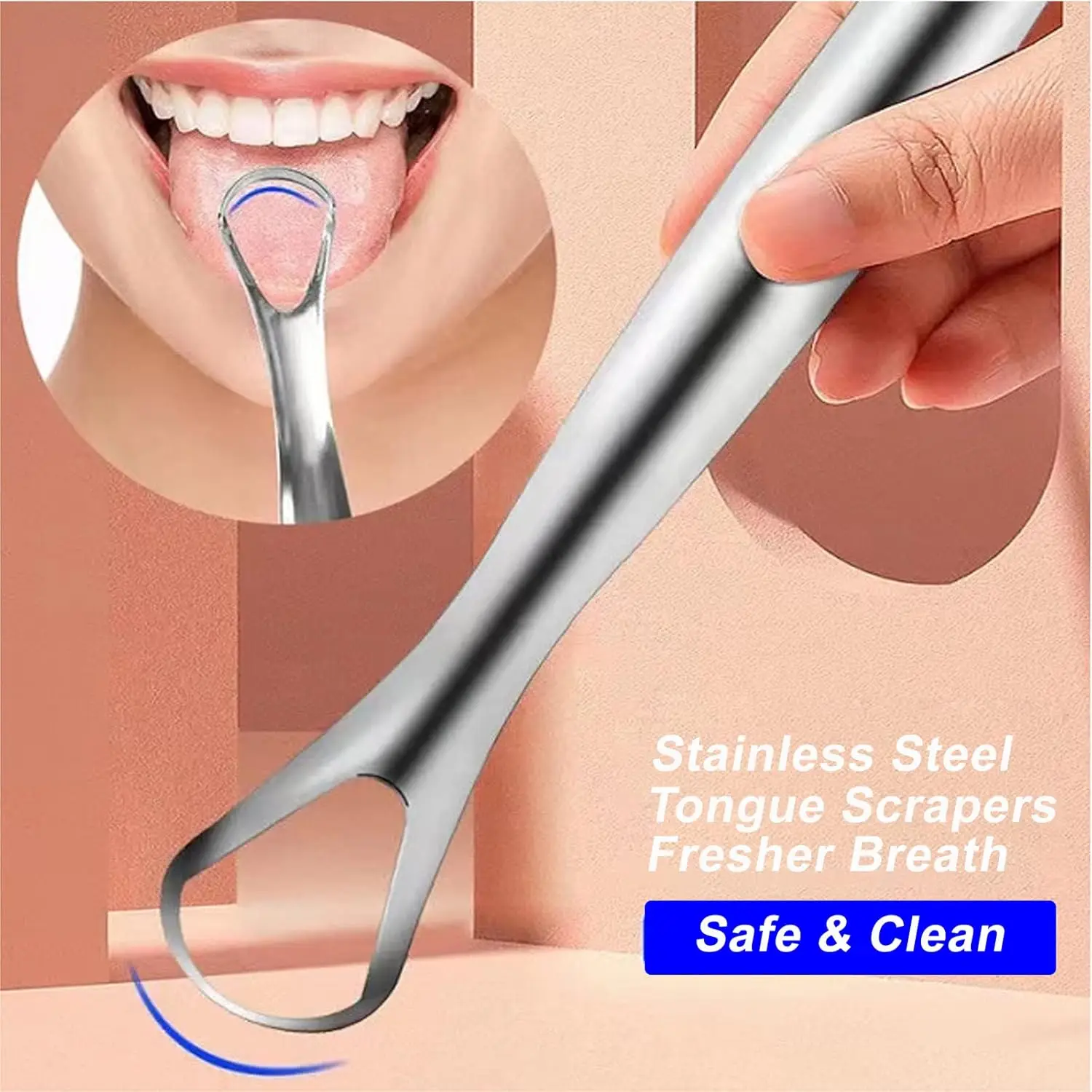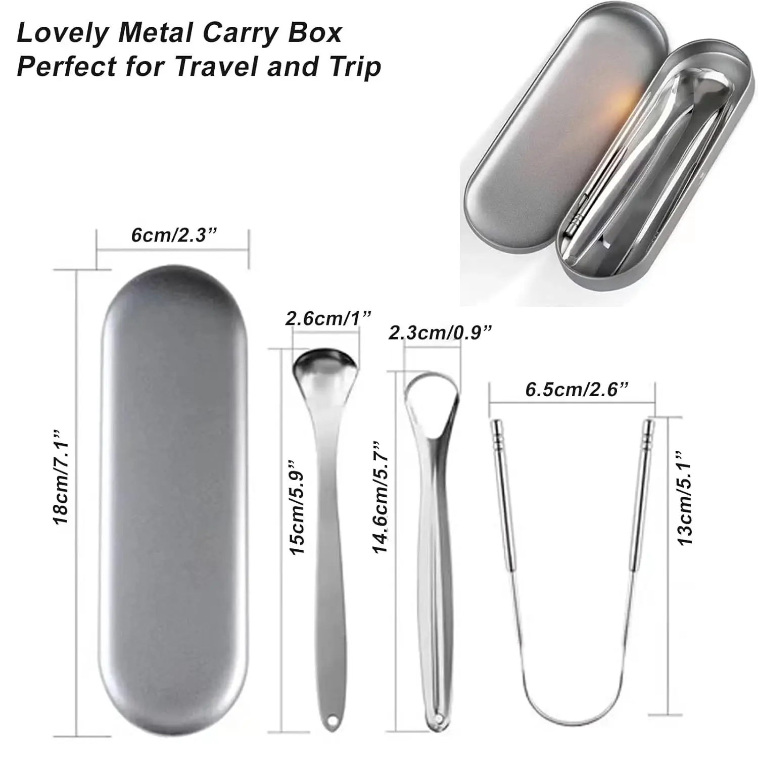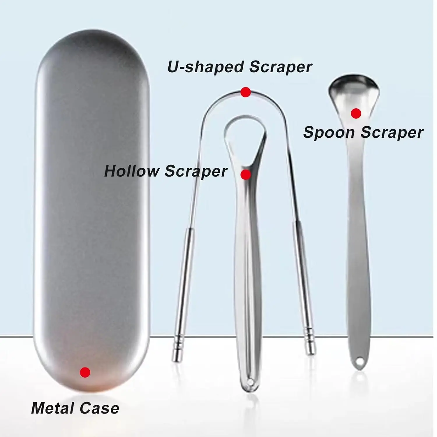 3/4PCS Tongue Scraper for s with U-shaped Hollowed-out Spooned Stainless Steel Tongue Cleaner with Metal Travel Case Bad