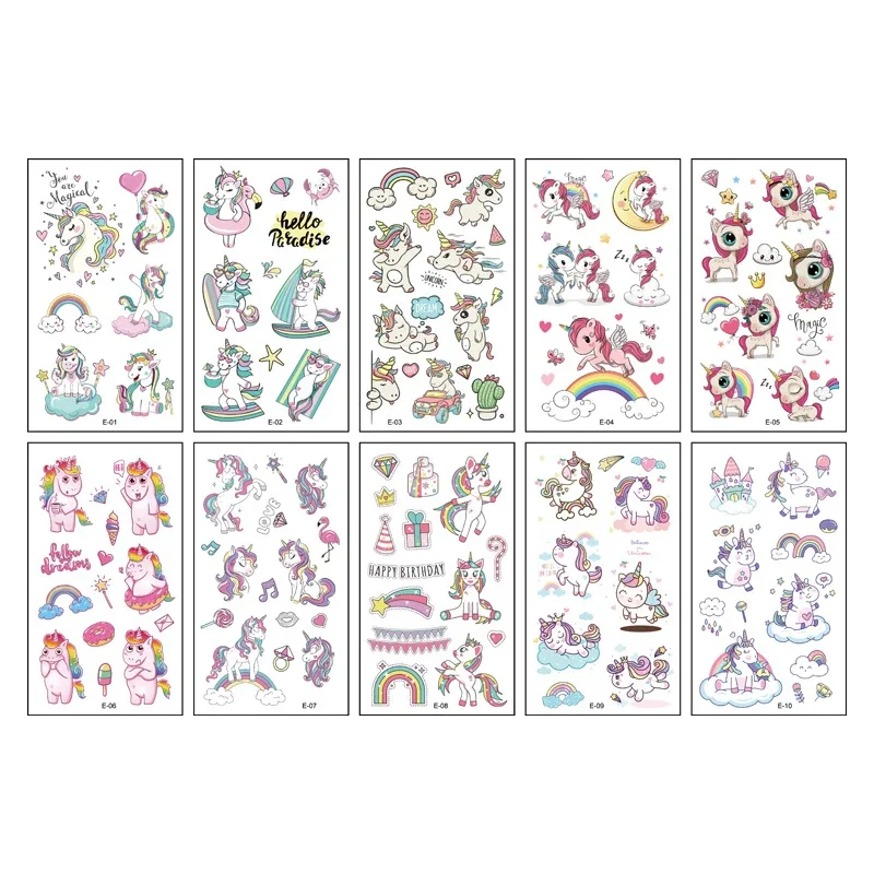 ALI shop - rezultati pretrage ... ... 10 sheets Unicorn Fake Tattoo Stickers Cartoon Temporary Tattoos Kids Unicorn Decoration Waterproof Tattoo Birthday Baby Shower ::: 2021 ::: :::