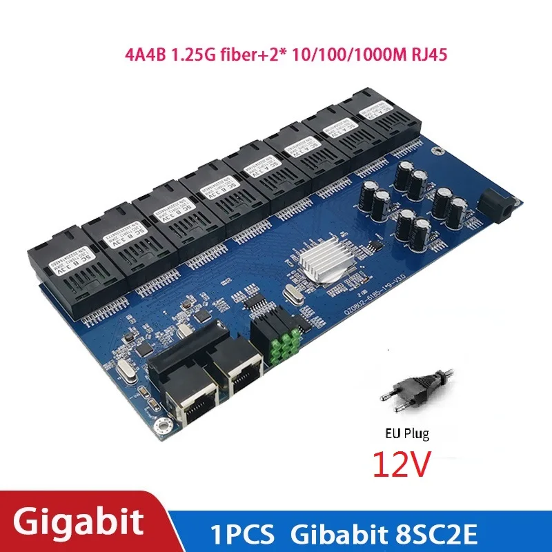 Gigabit Fiber Optical Switch 8 SC 2 1000M RJ45 Gigabit Ethernet Switch Media Converter 12V1.5A