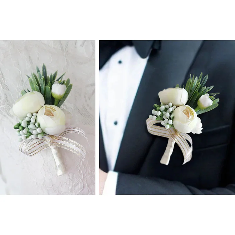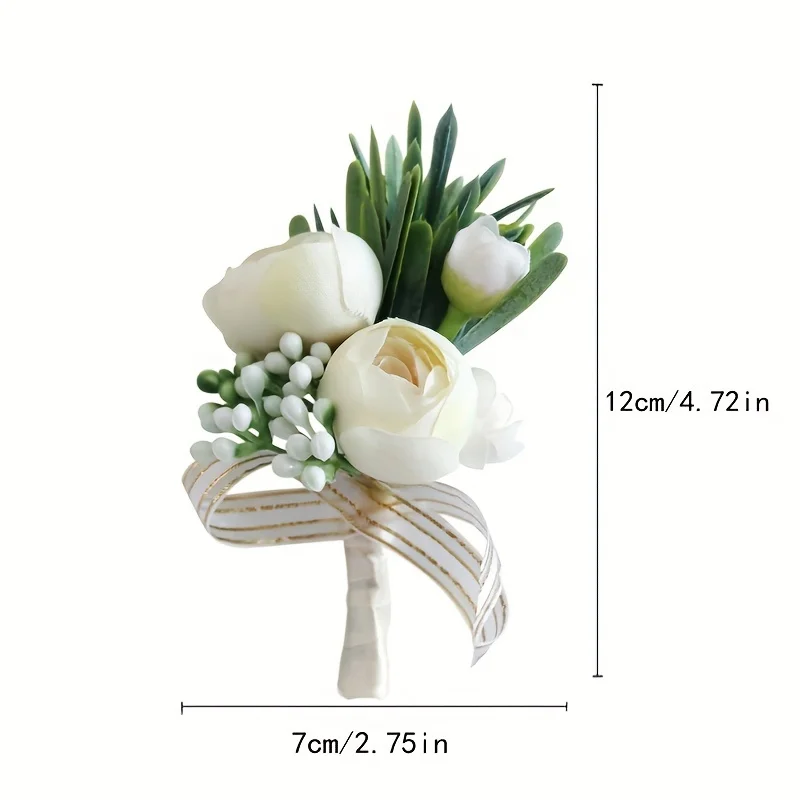 Artificial Ivory Rose Flowers Simulation Silk Corsage Boutonniere Fake Wrist Flowers For Wedding Birthday Bridal Décor
