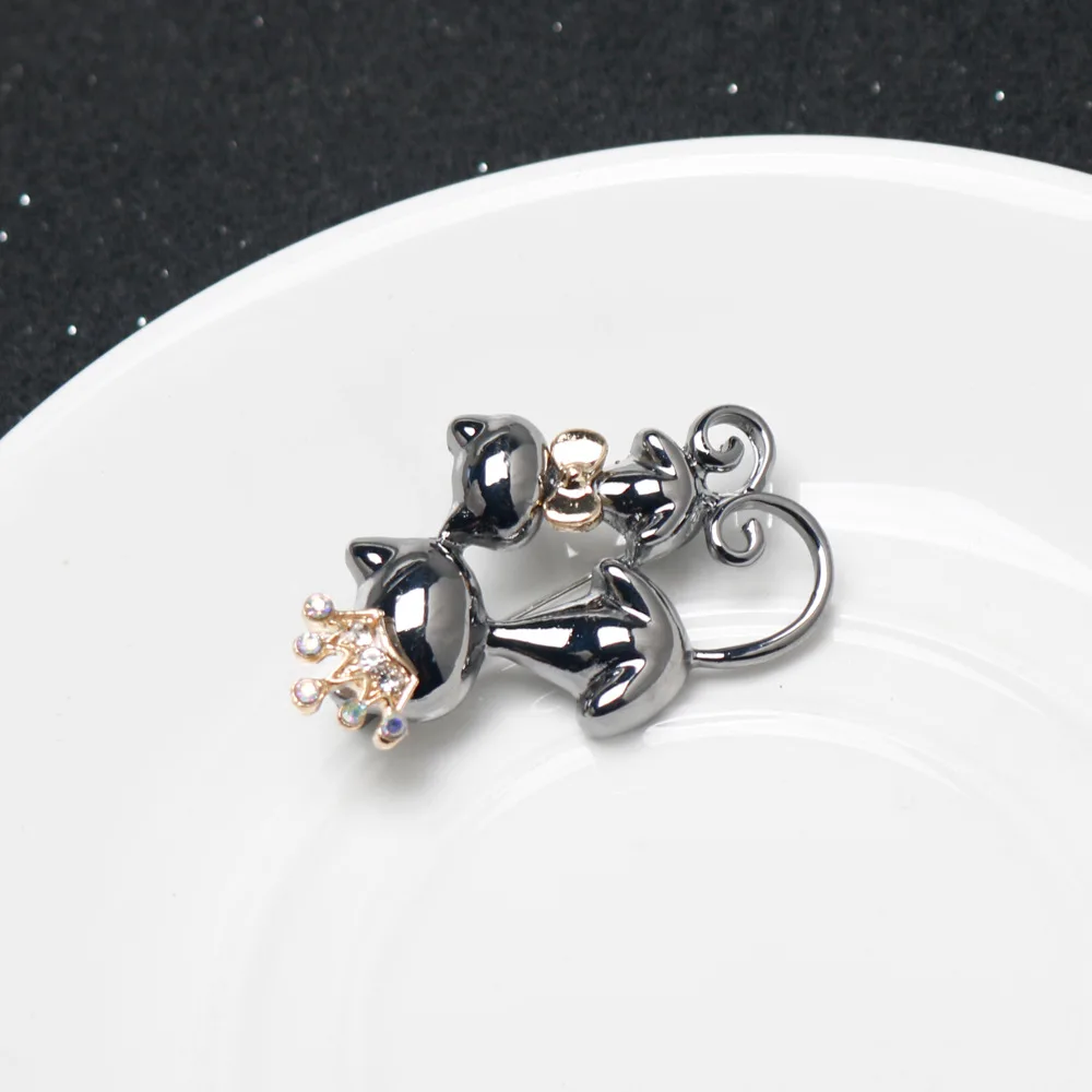 New Cute Cartoon Love Double Cat Brooch With Shiny Animal Bown Accessories Cat Collar Brooch Pin 2024